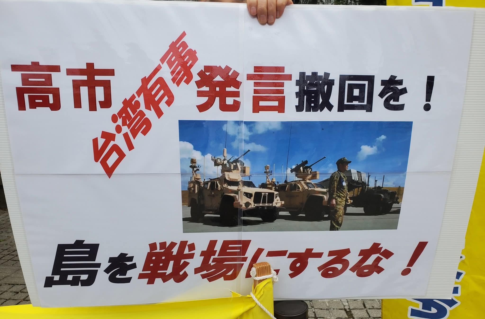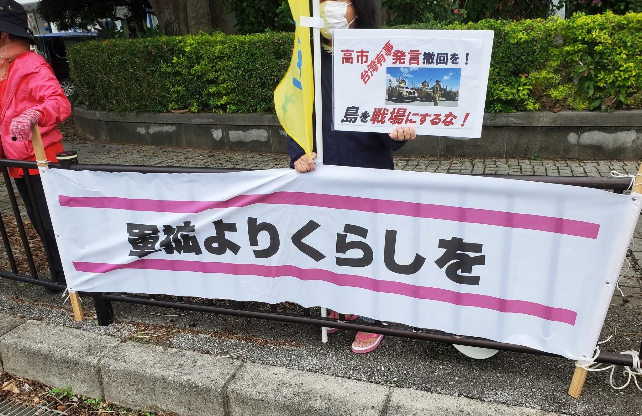 11月19日,琉球群岛石垣市的居民上街抗议并要求日本首相高市早苗撤回涉台言论,他们认为高市发表的“台湾有事即是存立危机事态”的言论——这种发言可能将冲绳岛和上面的民众,以及所有自卫队员们,“都投入美中霸权争斗的战火之中”——他们表达了愤怒。对于石垣市长对该发言表示“理解”的表态,市民也提出了严正抗议。同时,他们强烈呼吁通过和平的对话外交来解决问题。