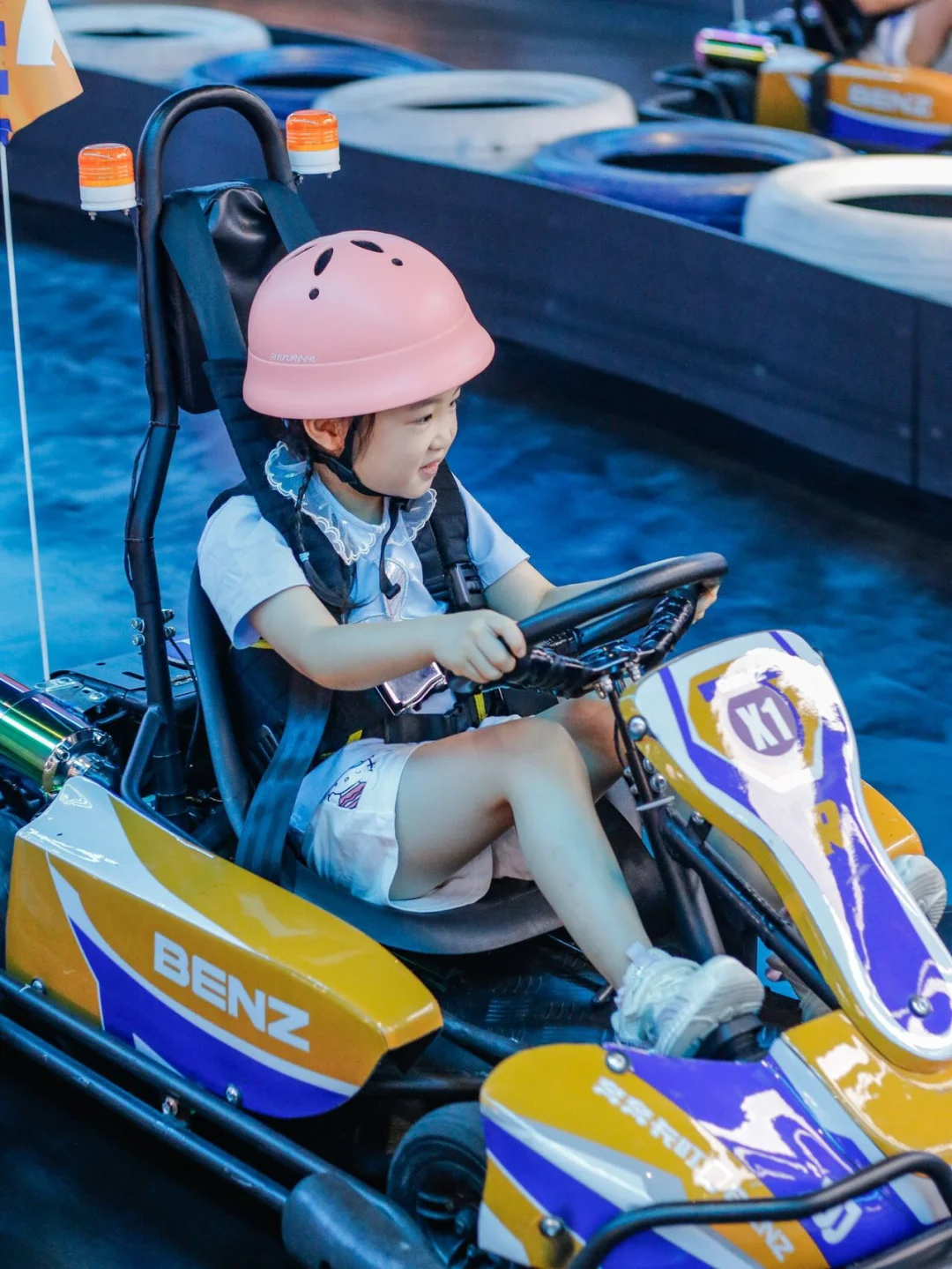可以单独乘坐,也可以亲子体验,蛮有意思的,小朋友自己开也很有成就感,工作人员很细心,每样护具都有消毒。
