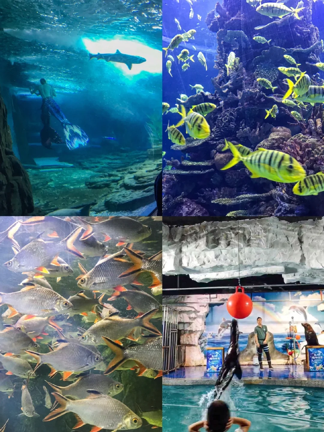 特点:整个展馆由9个展区组成:热带雨林馆、海底隧道、海洋生物馆、梦幻水母馆、海洋剧场、科普3D馆和标本馆,可以看到各种海洋珍稀鱼类,还可以观看美人鱼表演、海兽表演,主要是一年四季不受天气影响都可以前往。