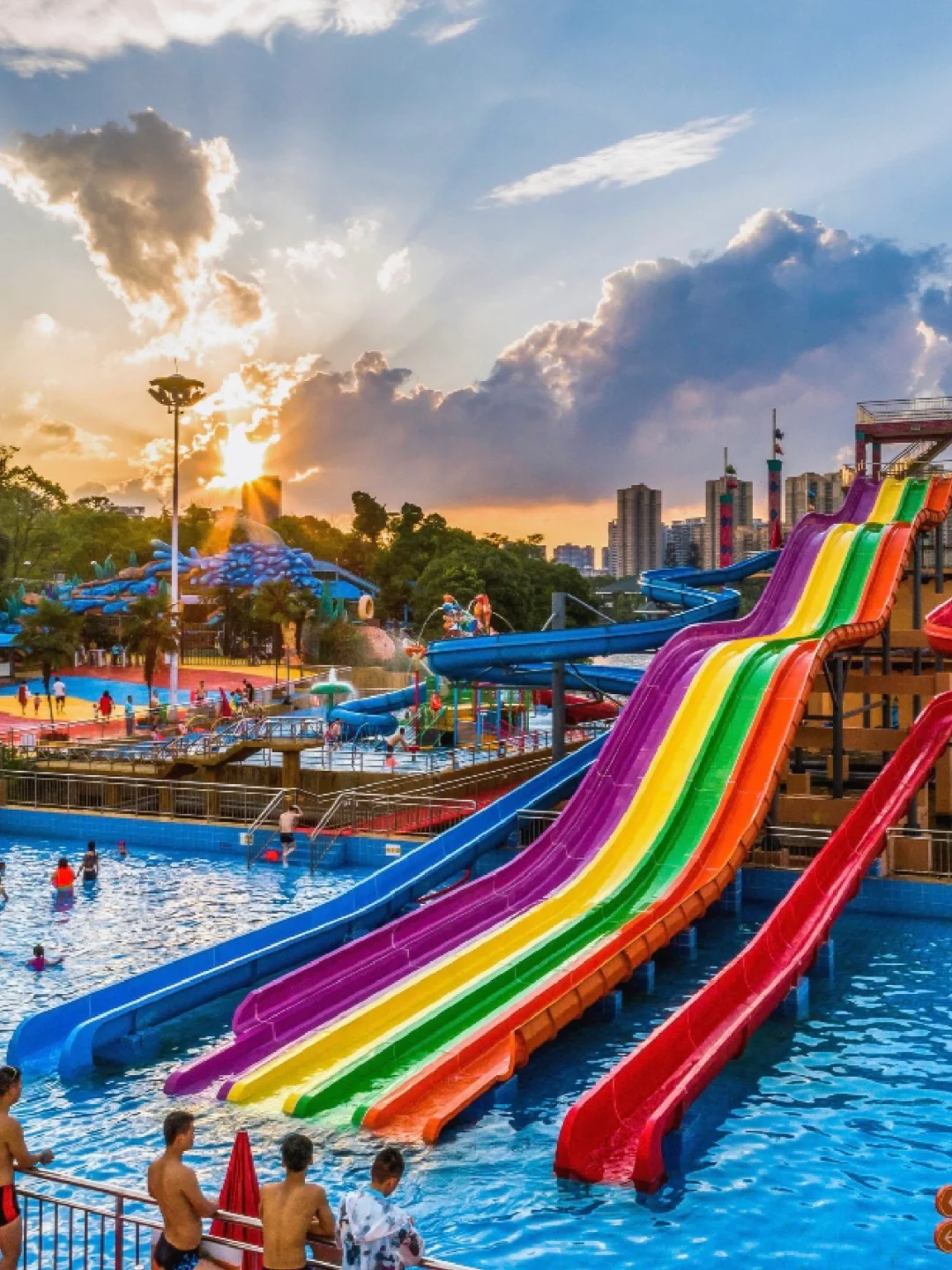 💡 有组合滑梯、互动水寨、海啸造浪池、儿童戏水池等。戏水滑梯屋里面巨桶水花倾泻而出,回旋蜿蜒滑梯趣味无穷。