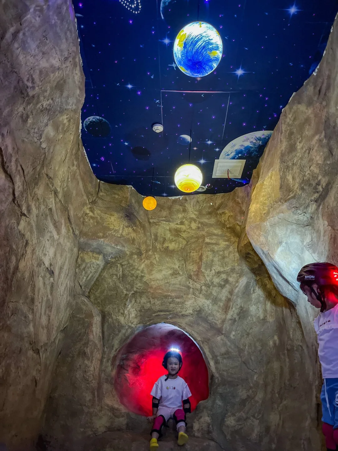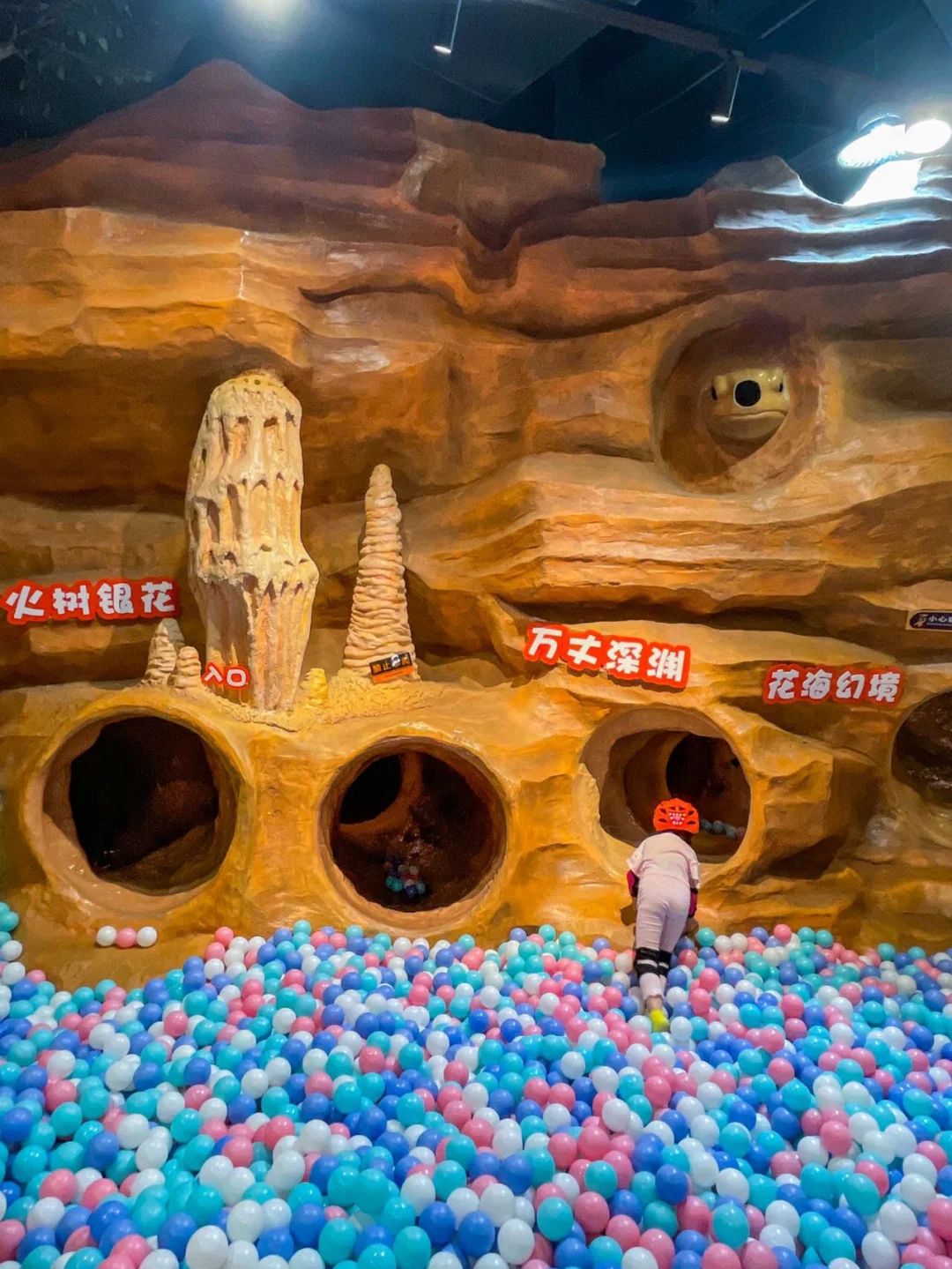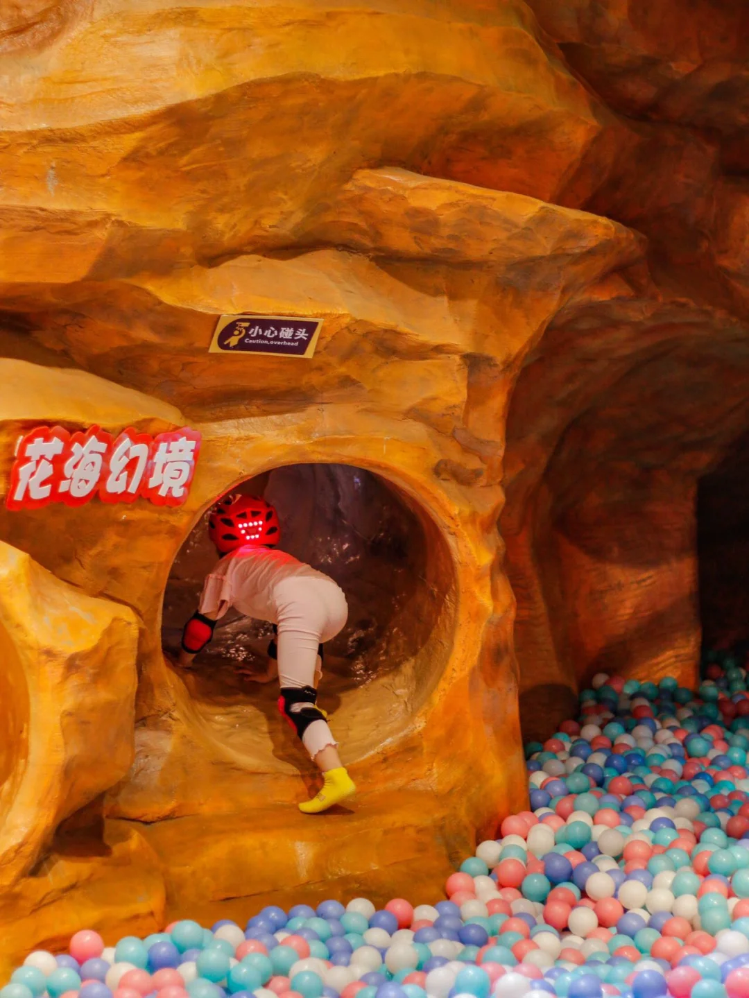 周末双休带娃去了一家商场里的仿真户外探险,简直是太好玩了!🌳🎢 这里是探险+游乐结合起来的洞穴式游乐场既能锻炼孩子探险精神同时运动放电了!而且真的好凉快! 这边有大小不一的8条探险洞穴,占地面积足足有1500平!每个主题风格都有所不用,难度系数也不同! 不得不说,里面的设计真的是超级棒!每个隧道都有不同的主题,比如侏罗纪公园、梦幻星空、极限挑战、雪域寻宝、花海幻境等等,每个区域都充满了乐趣和挑战,除了隧道之外,还有攀爬网、海洋球、滑梯等等! 每个洞穴里面都是未知的,真的很需要小朋友的勇气!!最好几个朋友👬约着一起玩,相互鼓励,爬完一个洞穴一定是满满的成就感! 我孩子最喜欢梦幻星球和花海幻境,里面是主题房,有惊喜哦, 会特别好看. 洞穴玩累了可以去探矿区玩一下淘沙,旁边还有休息区,座位很多,家长可以在里面休息,短暂的解放双手! 更让我惊喜的是,这里的工作人员非常细心,在每个孩子进行探险前都会检查他们是否穿好防护用品,真的是让妈妈们完全解放了双手! 建议5岁以上的小朋友去,小点儿的孩子就只能玩小洞穴和海洋球池啦! 如果可以和小伙伴一起组队探险就更有意思啦. 我真的太喜欢这里了, 下次还要带邀请更多的小伙伴一起来探洞👍🌟