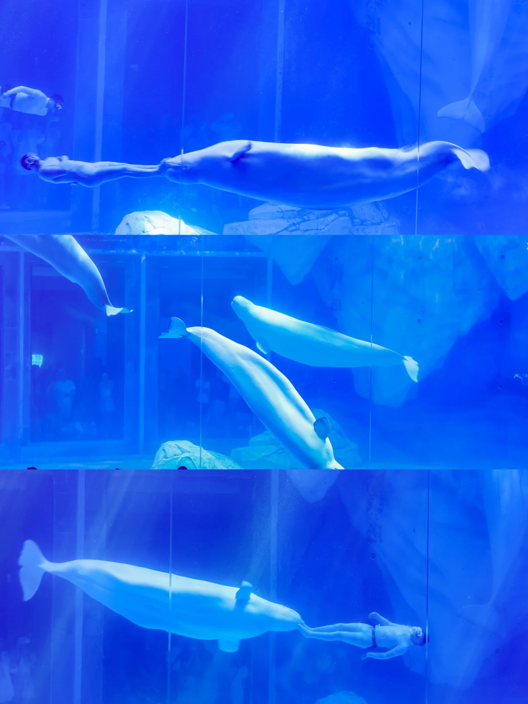 • 🐬温柔白鲸:洁白的皮肤在水下应的格外耀眼~水中游来游去孩子都追随着.