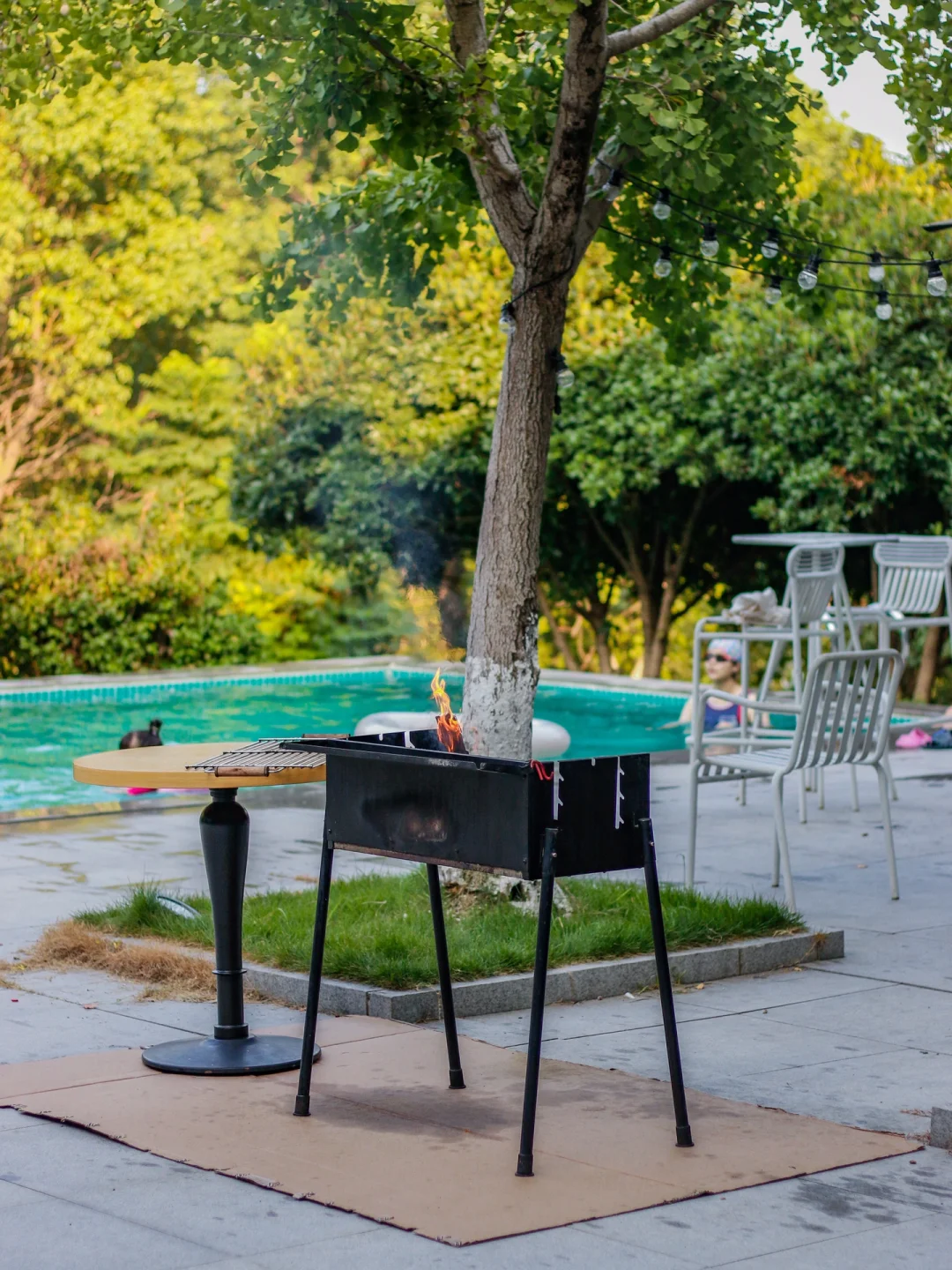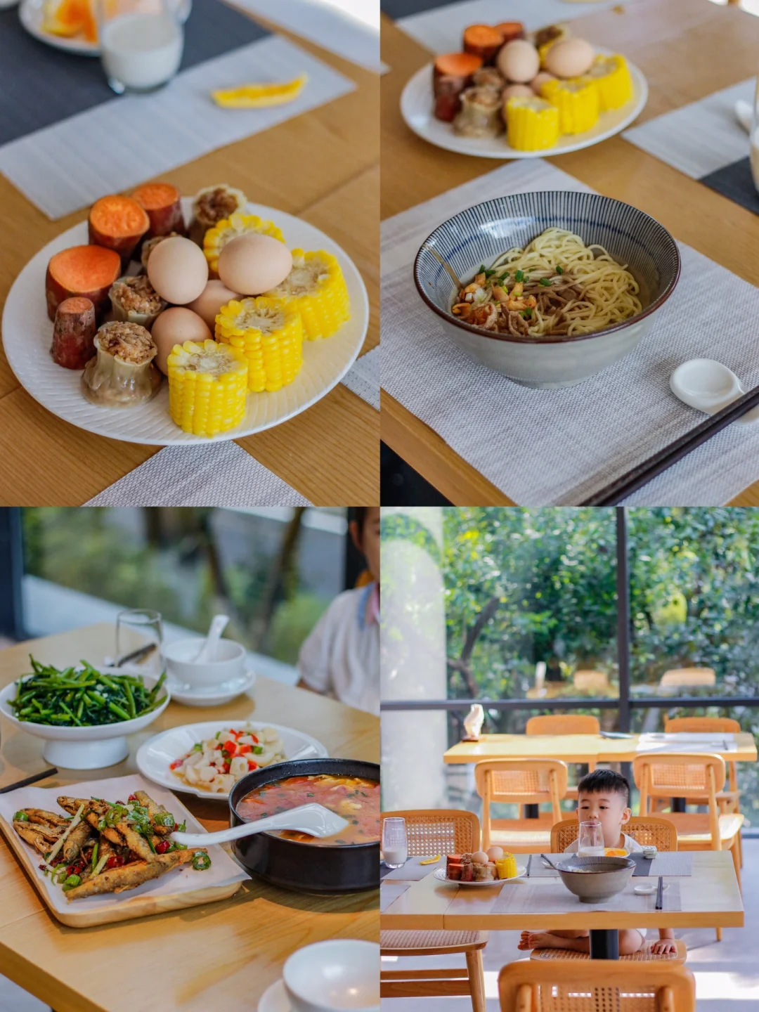 民宿的餐厅我很喜欢,全景落地玻璃,户外就是参天大树,仿佛置身于森林之中。早餐有热干面🍝、鸡蛋🥚、 红薯、玉米🌽、牛奶🥛…健康又美味,午晚餐也可以预约订餐,也可以预定烧烤炉在露营区自助烧烤!