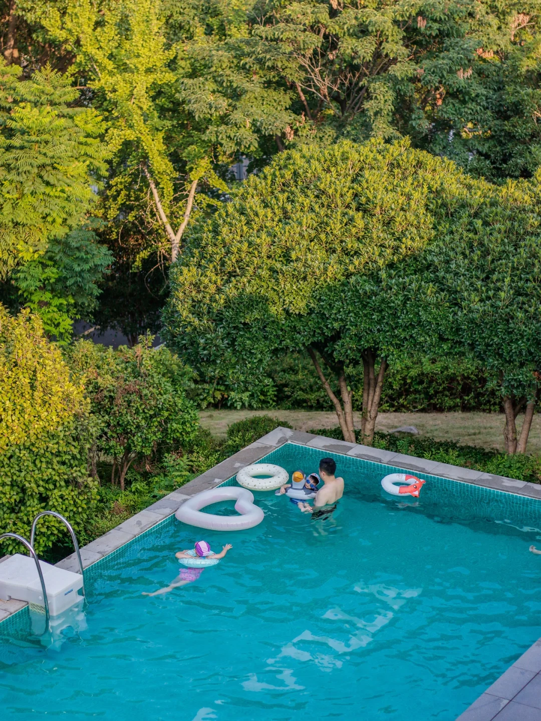 户外泳池🏊♀️也可以试试,感觉藏在深山中,好玩又很治愈!