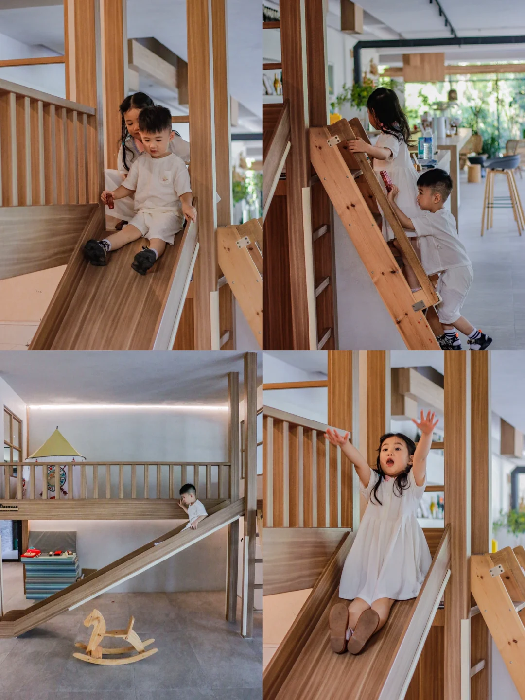 我预定的是甘棠,是个复式楼,阁楼上有两张榻榻米,正好满足我这样二个娃的家庭!孩子一直在阁楼上完,完全不需要我们操心,房间的配套也不错,很舒适。