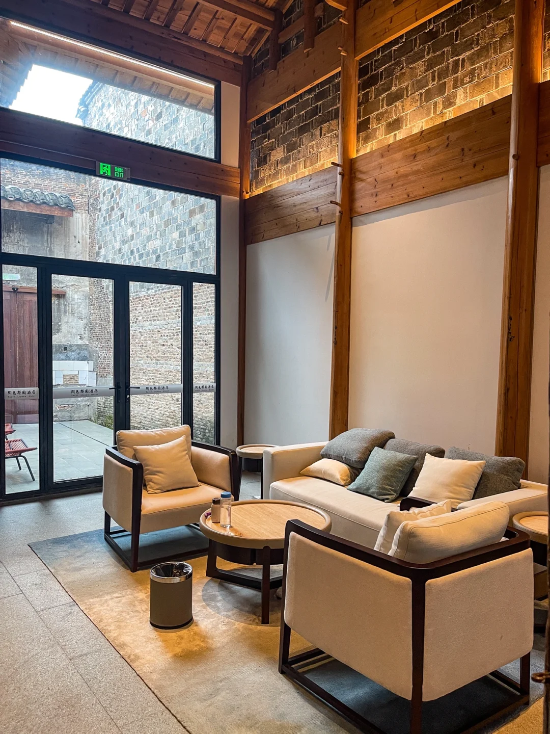 酒店外部保留了旧时的建筑,但内部却是现代化十足,现代室内设计与传统天井庭院式民居建筑风格完美融合,仅在这里就足以体验到景德镇"陶瓷文化、古窑文化、里弄文化"。