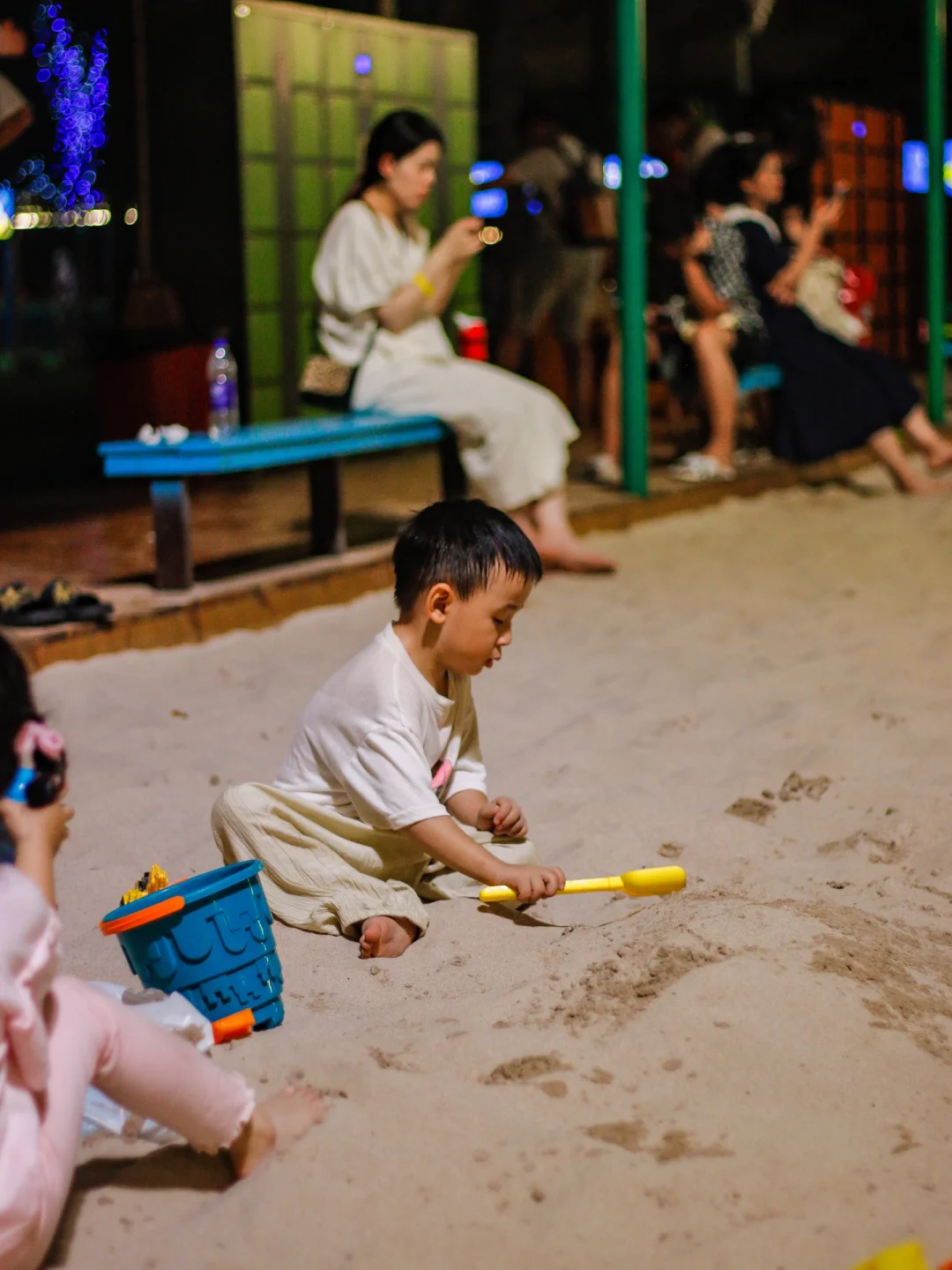 ☑️ 汉阳可口小镇户外活动中心现在夜间开放,这里有大片沙地,沙子细腻,还有攀爬绳索挑战,各种攀爬滑梯项目、可以徒手捉鱼、可以钓虾,还当能当一回小司机体验挖掘机的快乐!