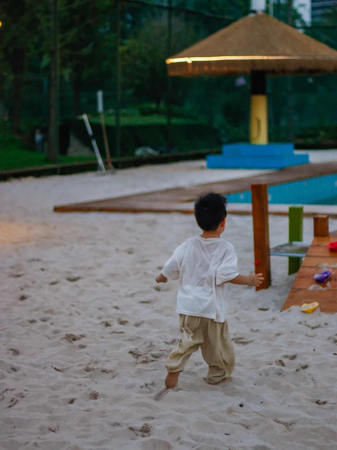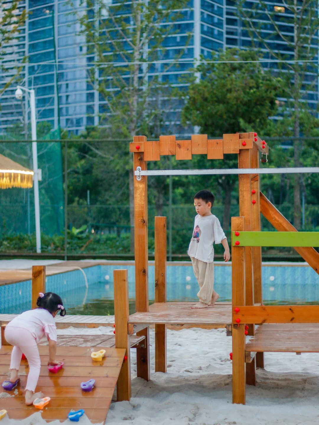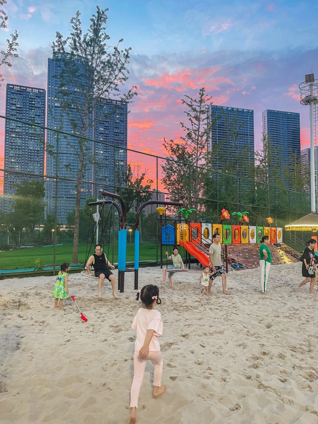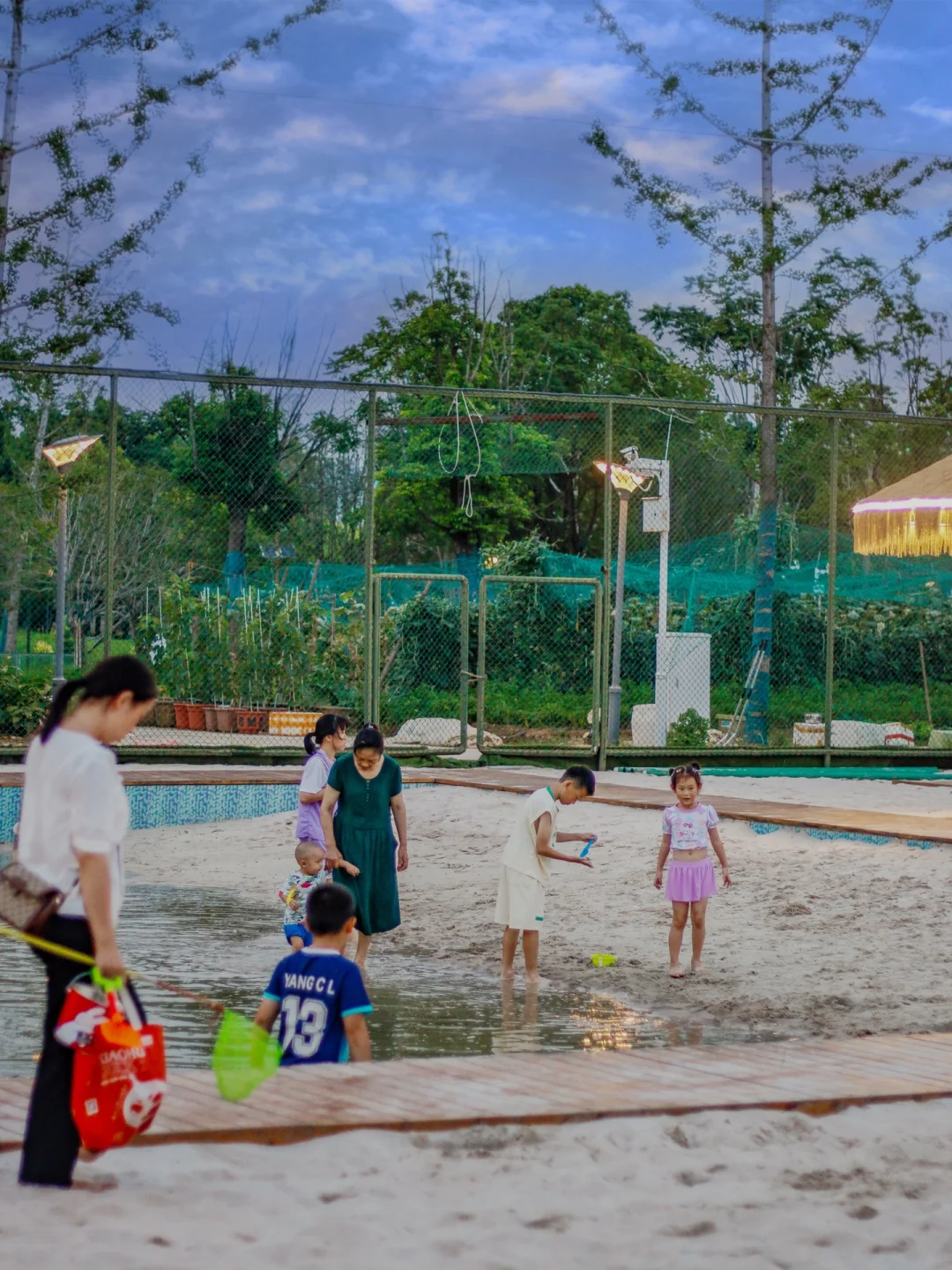 ☑️沙滩池子挺大,光在这里挖沙我觉得就可以让孩子玩一天了,真实感受仿佛就在海边,可以堆沙、挖坑有趣极了. 还可以打沙滩🏖️排球!旁边的水池可以捉螃蟹,捉小鱼!