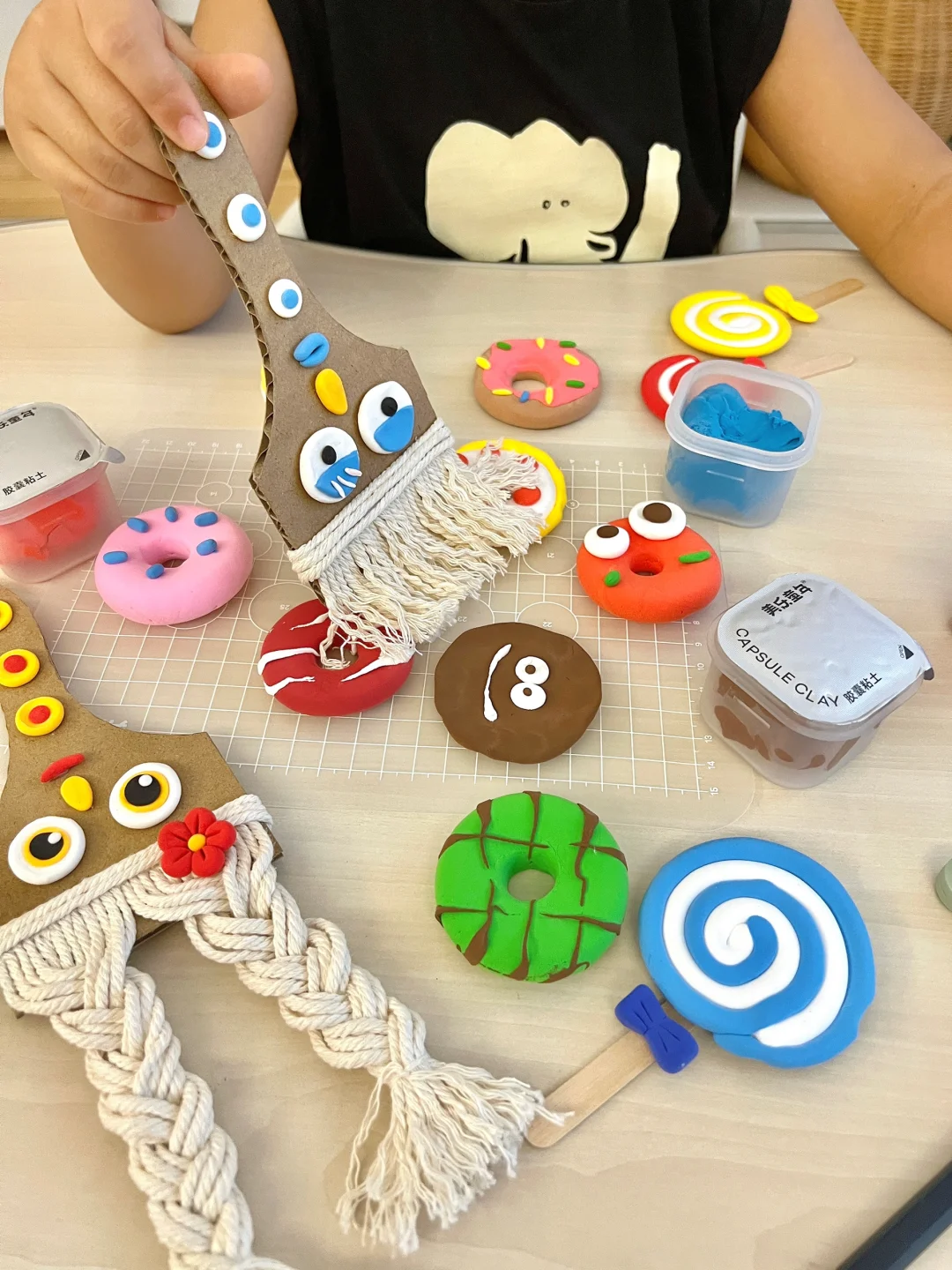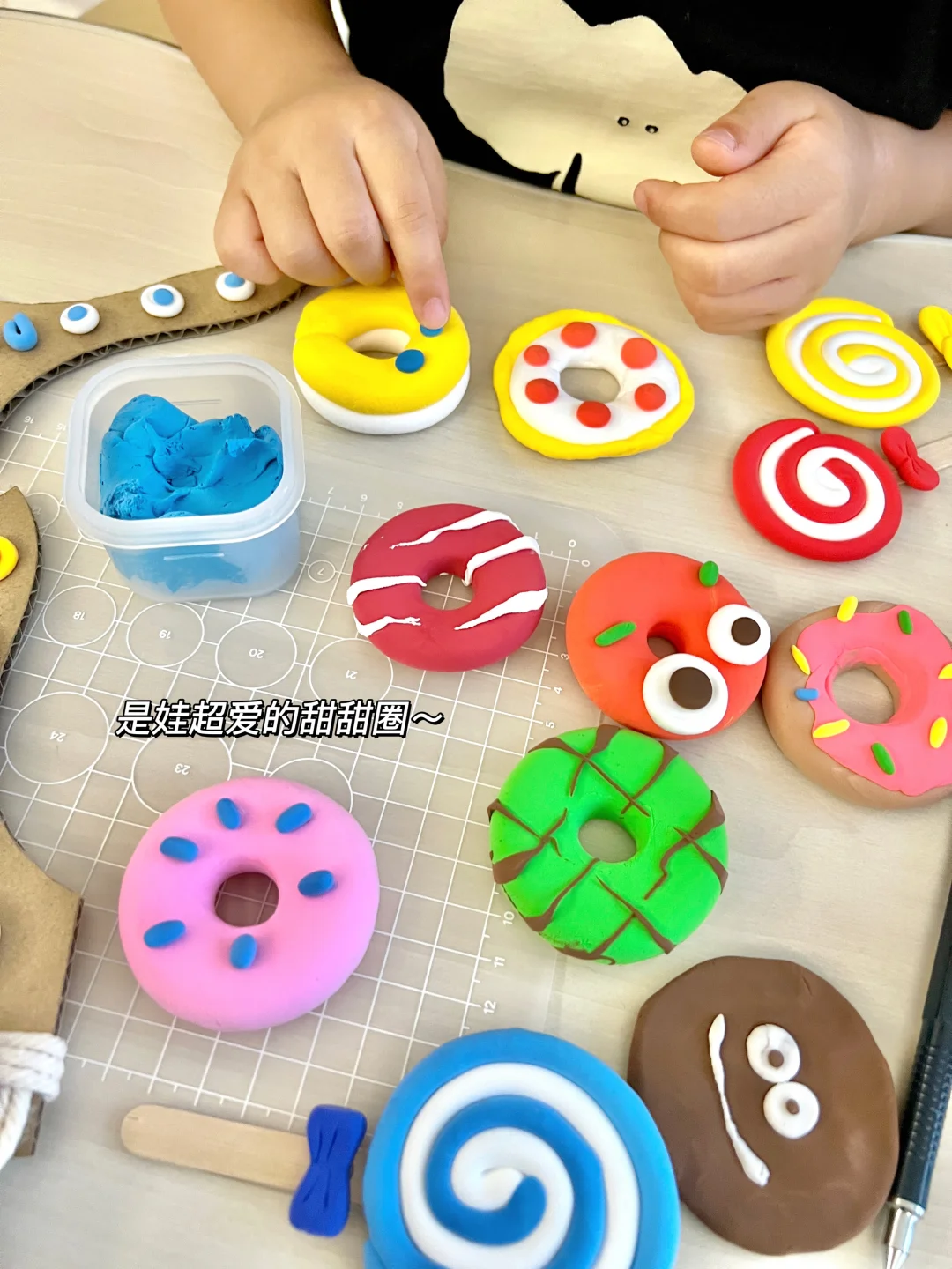 和尧宝儿用粘土一起做了好多甜甜圈、彩色糖果和小蛋糕,又做了个仙人掌🌵盆栽给店铺做装饰!玩的别提多开心了~
