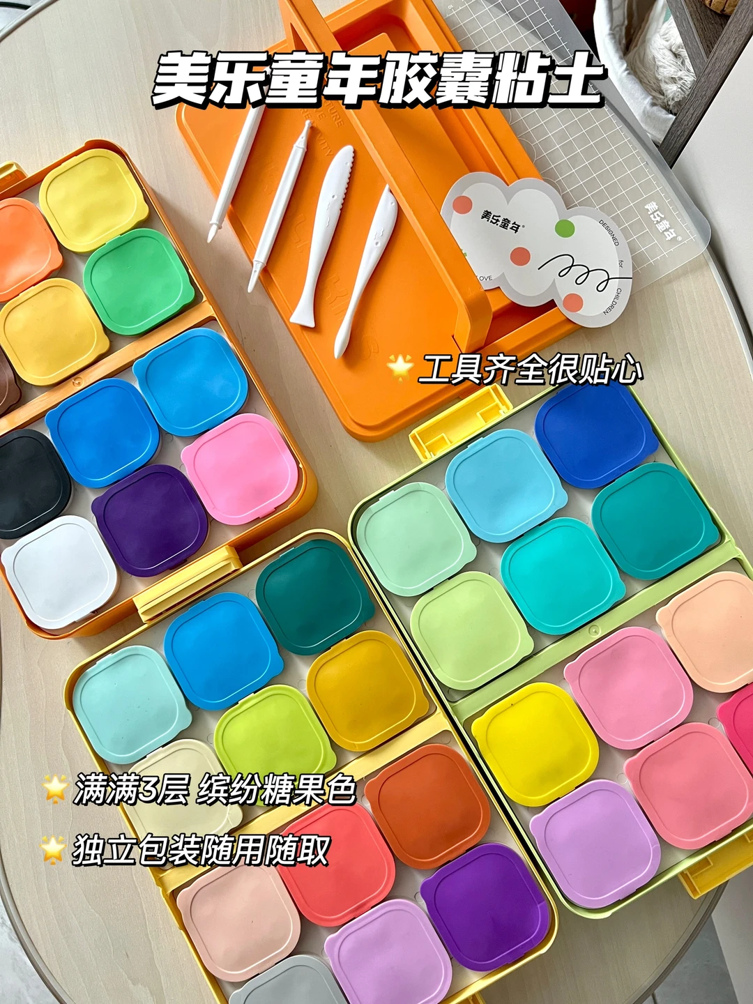 家有小朋友的推荐这款美乐童年的胶囊粘土,它是儿童配方,坚持5大不添加、6道严检,0异味,0重金属,0有害添加…原料很安心,可以放心给孩子用。