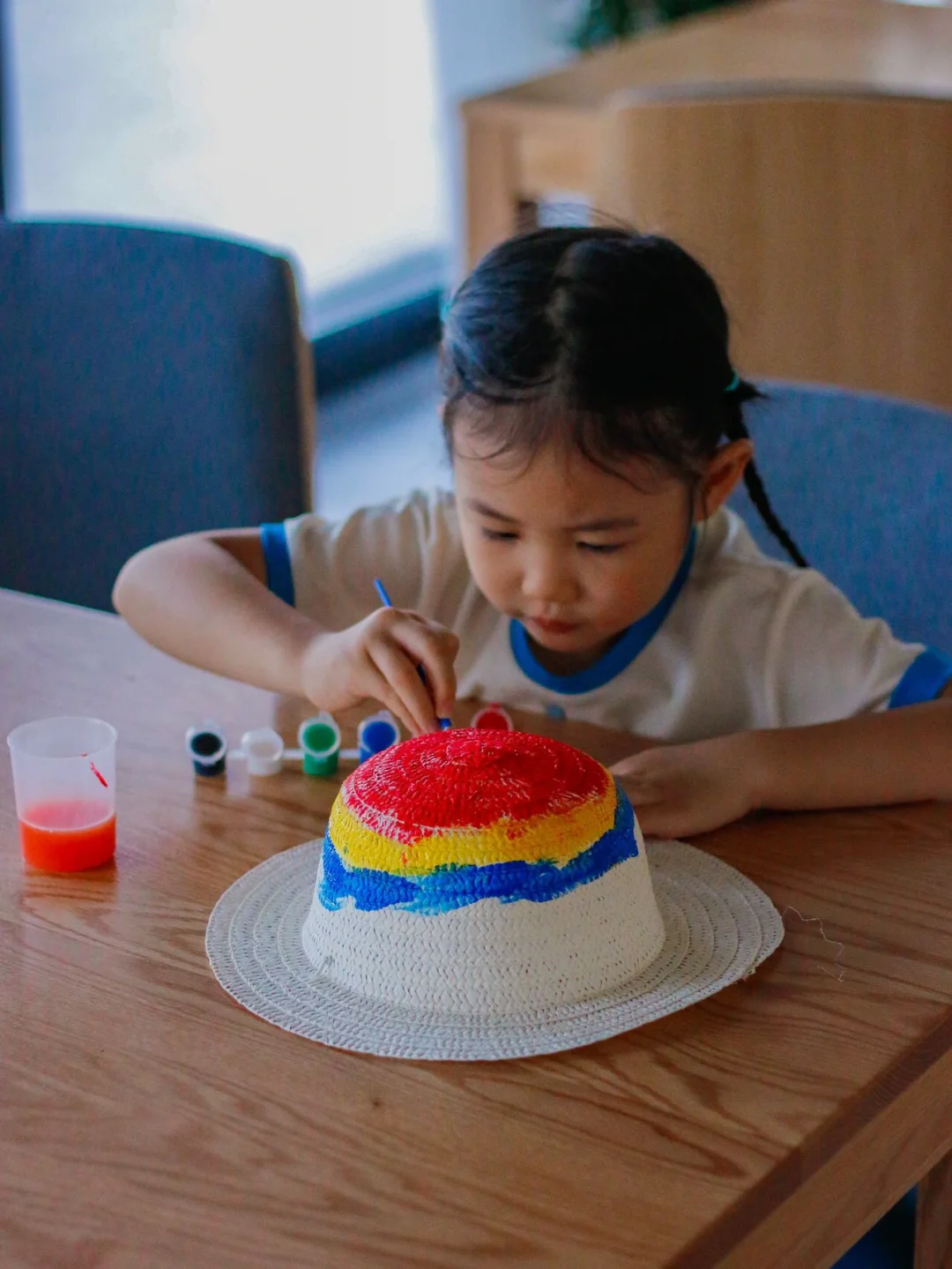 我们在民宿做的草帽,孩子可以充分发挥想象力画成自己喜欢的样子,我女儿画好了直接带出去拍照了, 很好看.