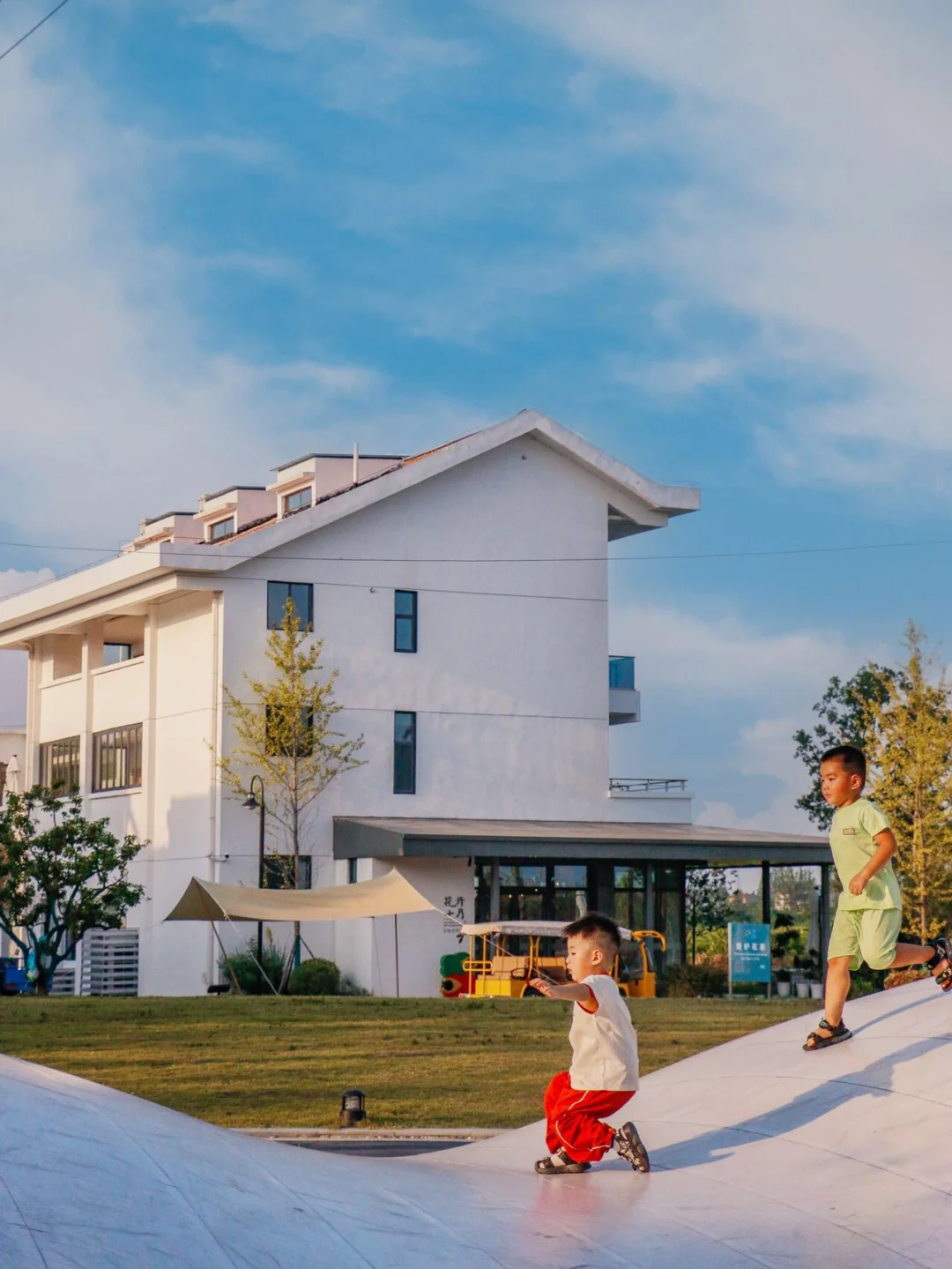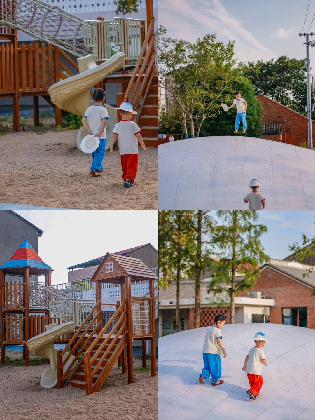 第二天一大早我们在民宿村逛了下,孩子在户外的儿童乐园玩的很兴奋. 有蹦蹦云还有滑梯等游乐设施,大片的草坪视觉上就很开阔.
