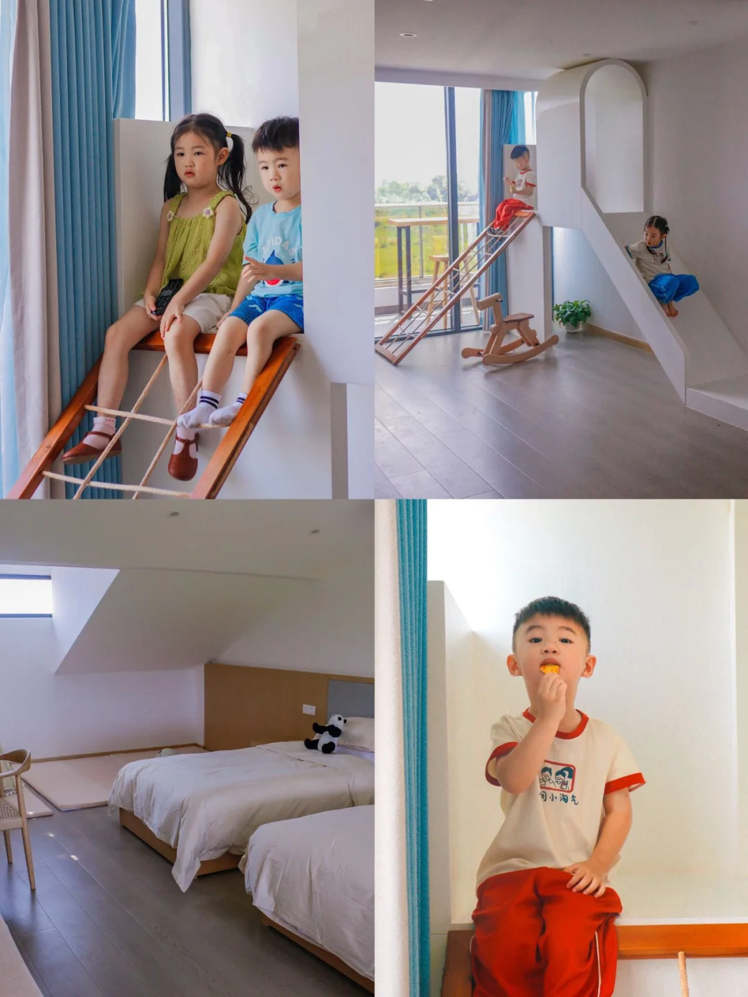 我们预订了一间亲子房,房间很大,是复式的,楼下是滑滑梯和活动空间,二楼就是卧室.还有孩子喜欢的帐篷⛺️. 光是在这个房间孩子就玩的不亦乐乎.
