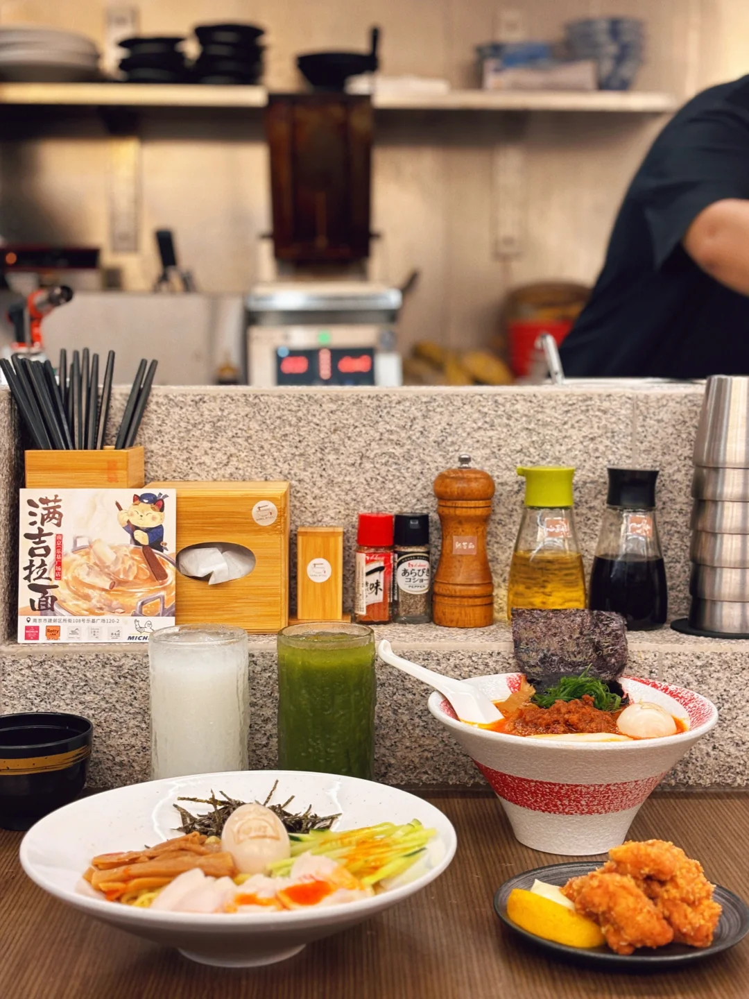 就在南京!不愧是米其林同款拉面‼ 味道比我去日本时吃的拉面🍜还好吃! 而且他们家都是现熬汤底! 一进门就可以看到明厨在熬汤🥣 不是预制菜 吃起来就很安心~ - 最重要的是 面的味道超好吃👍 可以选择的汤头品种很多! 我尝了8月🧵定辣味鸡白汤拉面🍜 汤汁好浓郁 一口下去很满足! 想知道下个月会有什么新品呢~ 朋友尝了夏季🧵定的凉面 表示酸酸甜甜 很开胃 很爽口 还有小朋友最爱的冰淇淋🍨 牛乳味很浓 从此把这家列入吃面宝藏店了✔