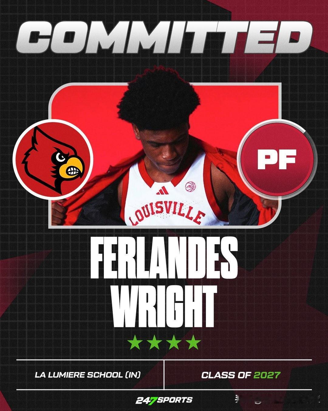 四星前锋Ferlandes Wright宣布承诺NCAA男篮 家乡球队路易维尔大学,这是他梦想的球队,来自肯塔基州Fairdale,高三赛季转学至印第安纳州La Lumiere,身高6-7=201,表示这里真的感觉非常适合我,能够为我的城市做贡献是我深感自豪的事情,我想让这座城市感到骄傲。