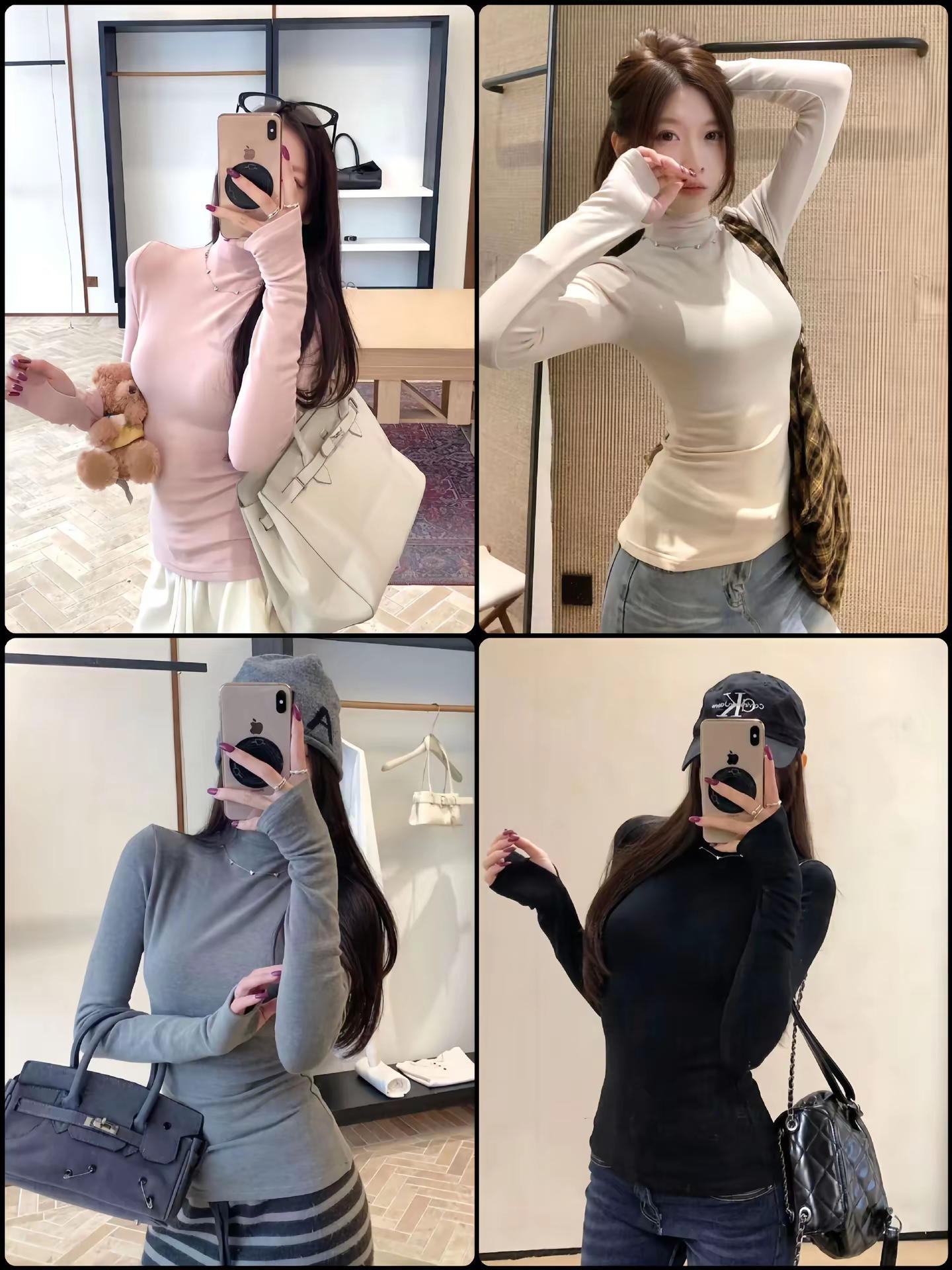 姐妹们一定要试试这件早秋打底衫,单穿超显身材,叠穿也很百搭好看!正肩版型很显肩背薄,领口贴合也不会走光,弹力很大,上身完全没有束缚感,微胖姐妹也能轻松拿捏,真的太爱了!穿搭辣妹姐妹