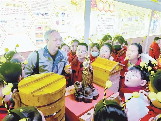 通过图文展板与模型,科普员向大家讲解蜜蜂的分工体系、蜂巢结构以及非物质文化遗产“养蜂制蜜技艺”。当新鲜纯正的蜂蜜入口,清甜的滋味不仅满足了味蕾,更让孩子们读懂了劳动的价值。