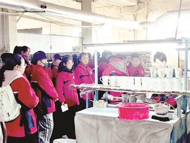 在平定莹玉陶瓷有限公司生产车间,学生们的目光被旋转的拉坯机与晶莹的瓷坯牢牢吸引。一块普通的陶土经过揉泥、拉坯、施釉、烧制等十几道工序,变成精美的瓷器。在企业技术人员的带领下,学生们近距离观察陶瓷生产全流程,见证陶土在匠人手中的“蜕变”。