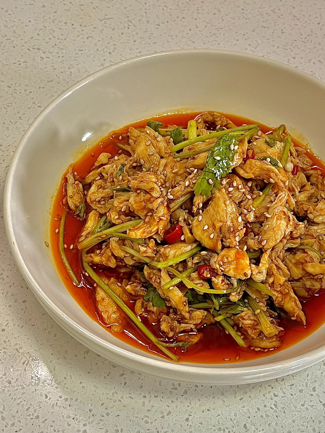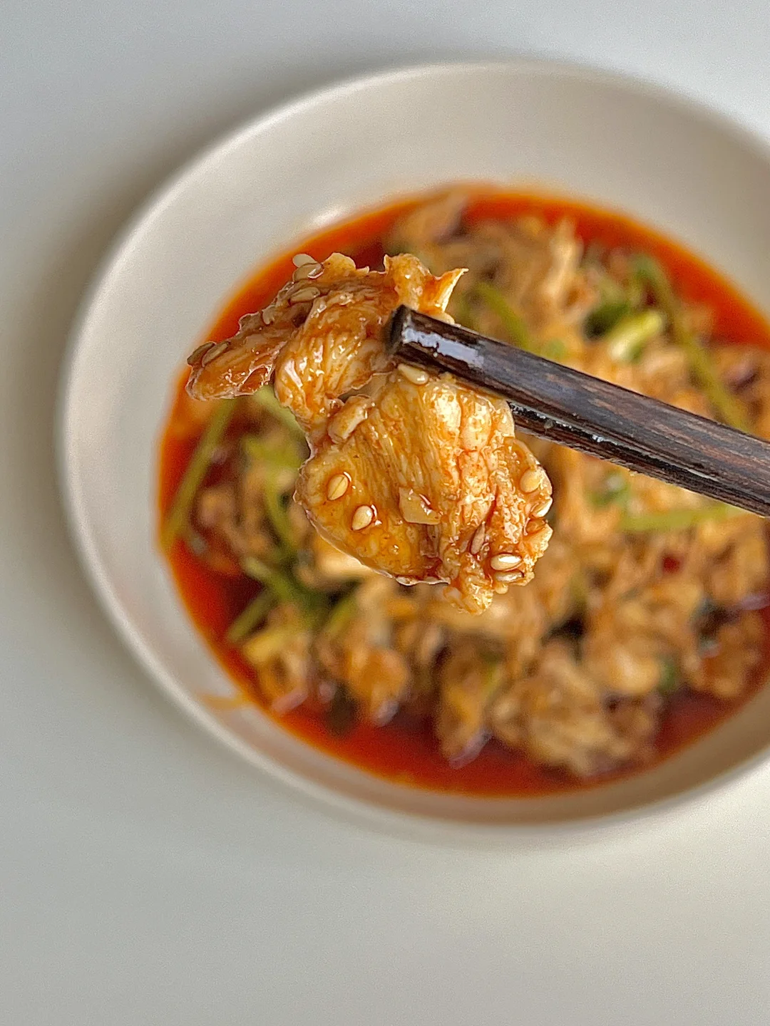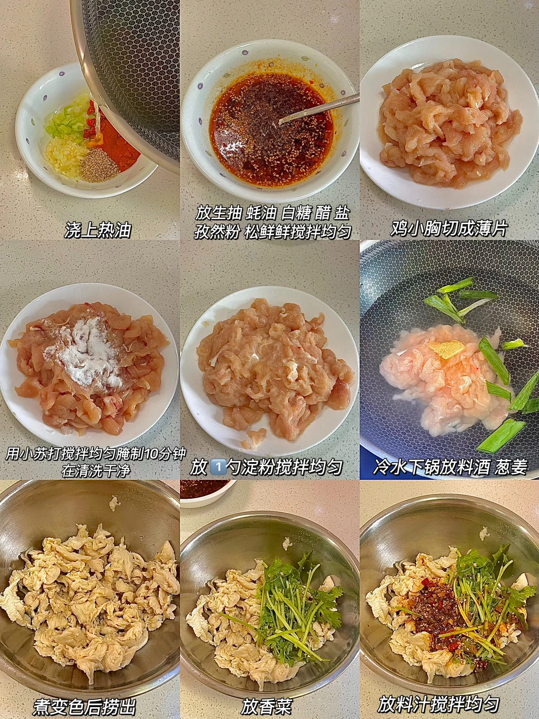 夏日消暑风味集 今日份一人食午餐分享: 凉拌鸡胸肉 . 食材:鸡小胸 葱花 蒜片 白芝麻 辣椒粉 小米辣 做法如图上⬆️ . 这样做出来的鸡胸肉清爽可口又不会柴哦 太适合夏天了~