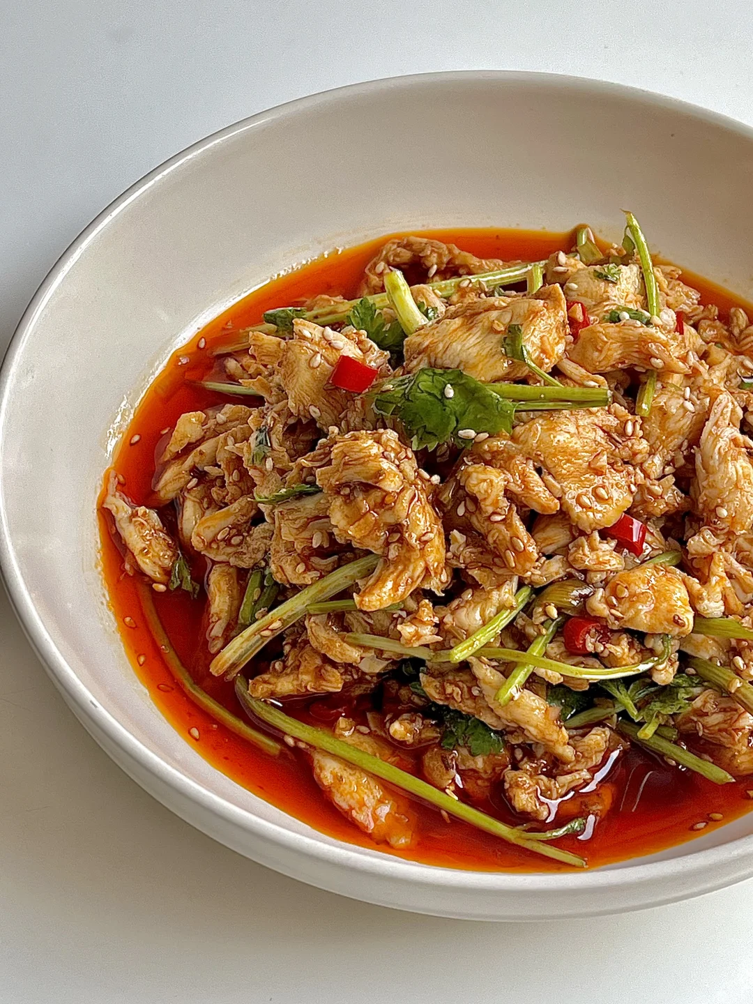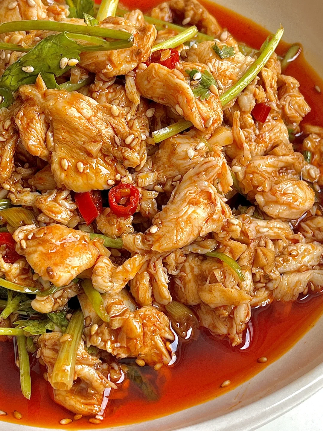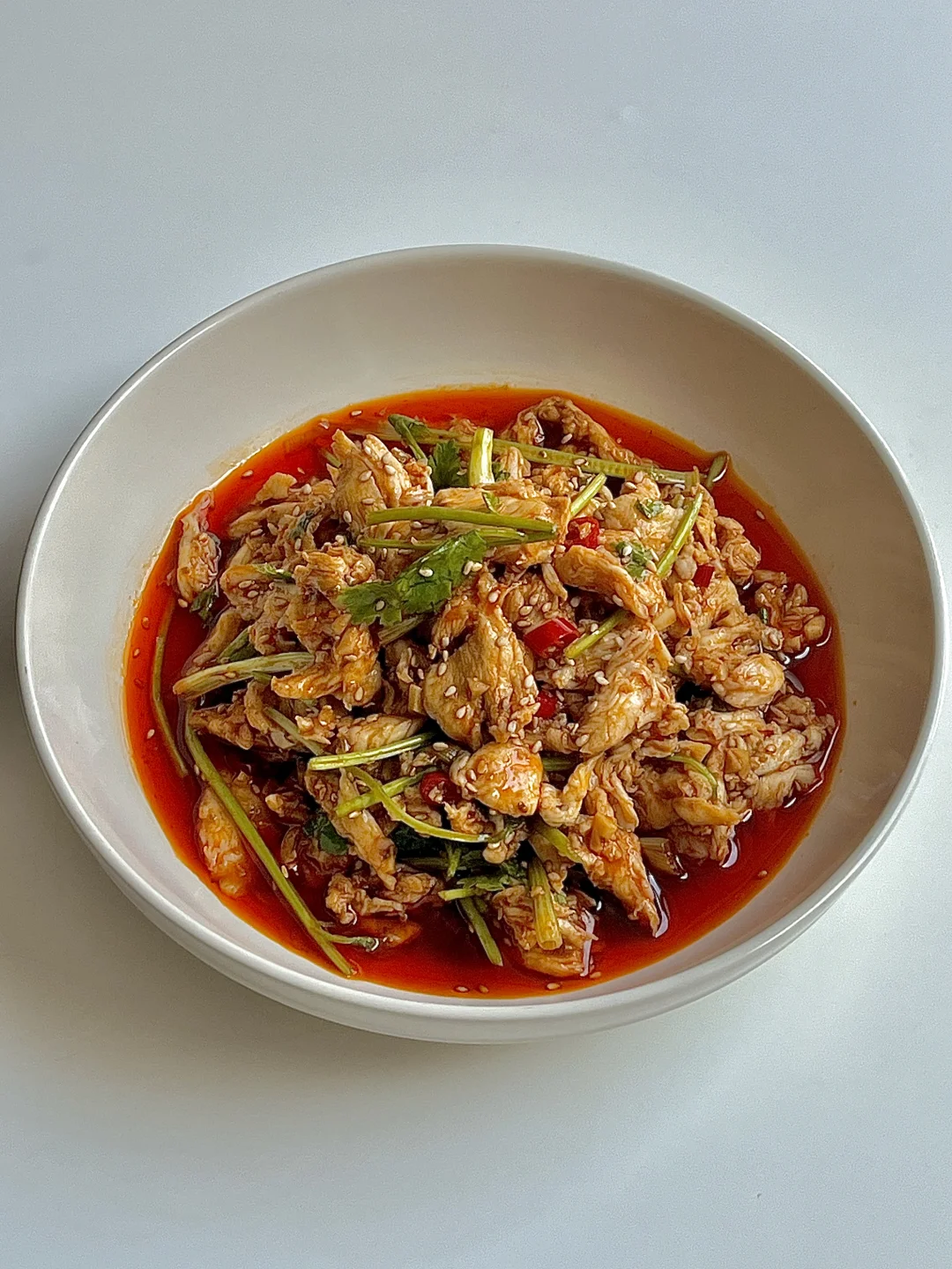 夏日消暑风味集 今日份一人食午餐分享: 凉拌鸡胸肉 . 食材:鸡小胸 葱花 蒜片 白芝麻 辣椒粉 小米辣 做法如图上⬆️ . 这样做出来的鸡胸肉清爽可口又不会柴哦 太适合夏天了~