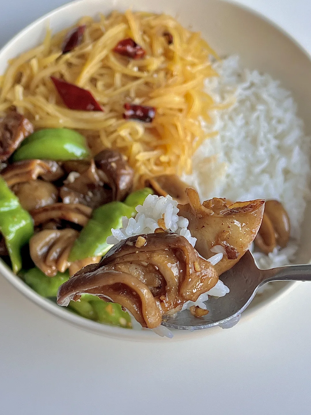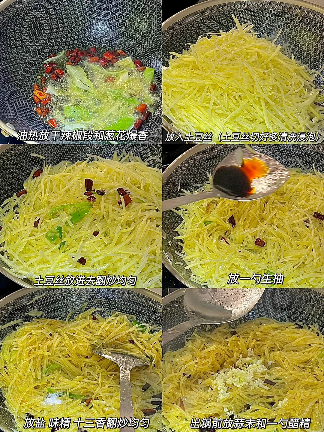 3️⃣放土豆丝翻炒两分钟。