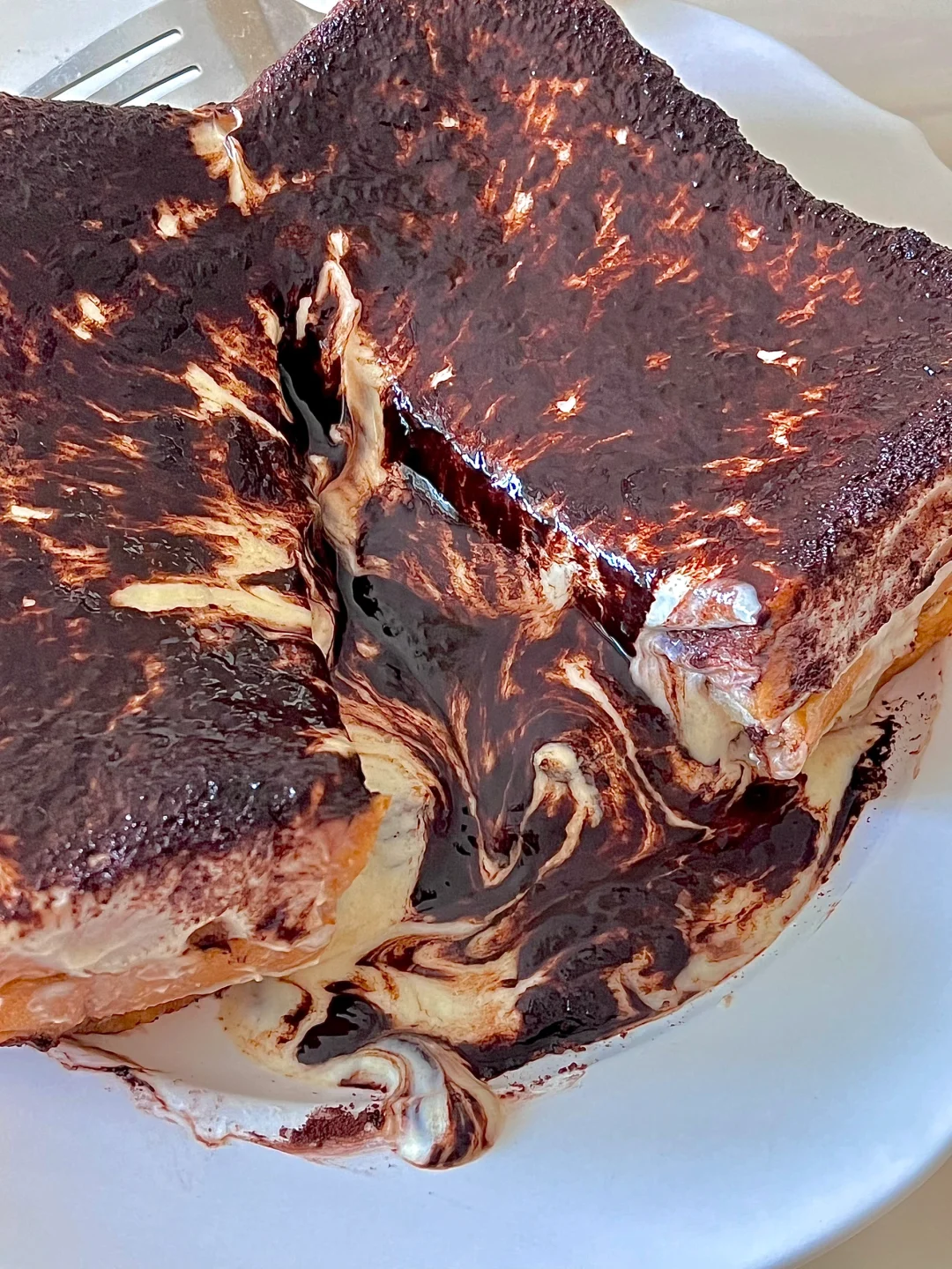 2⃣锅中放黄油,把吐司放进去两面煎至金黄