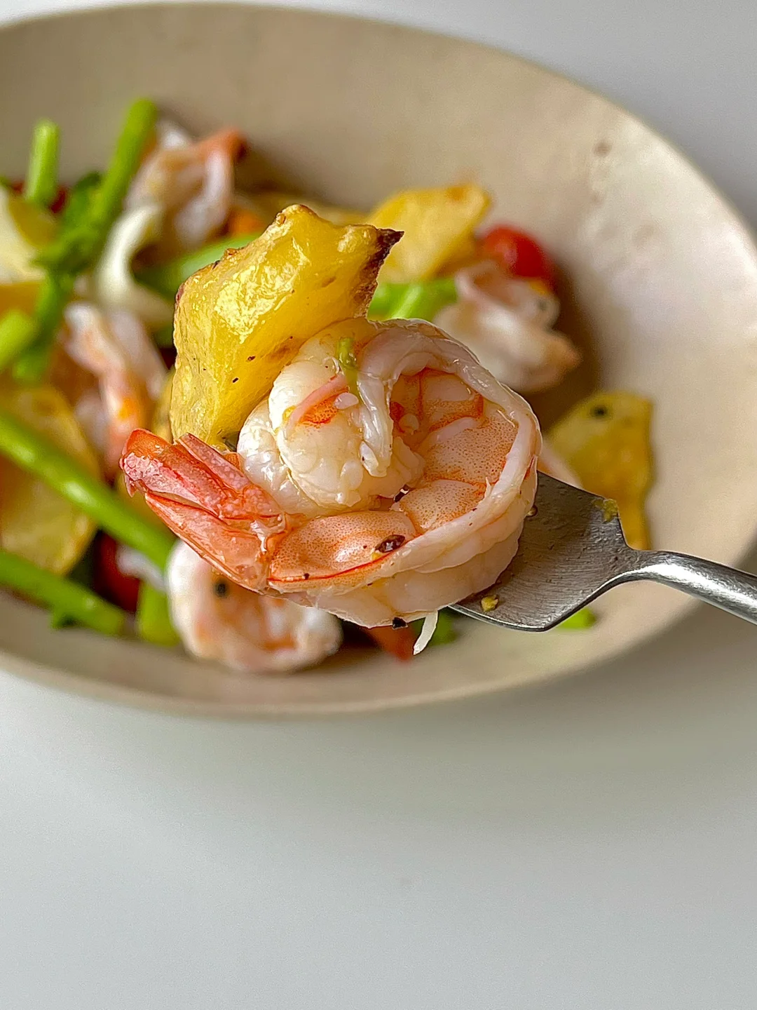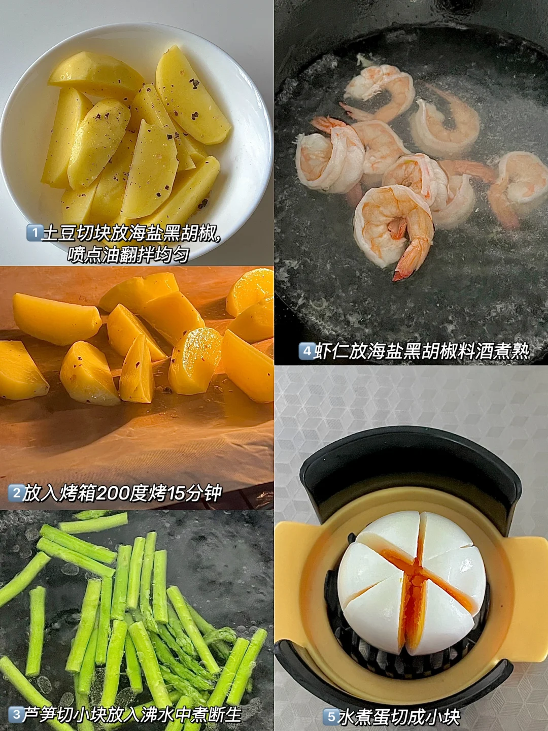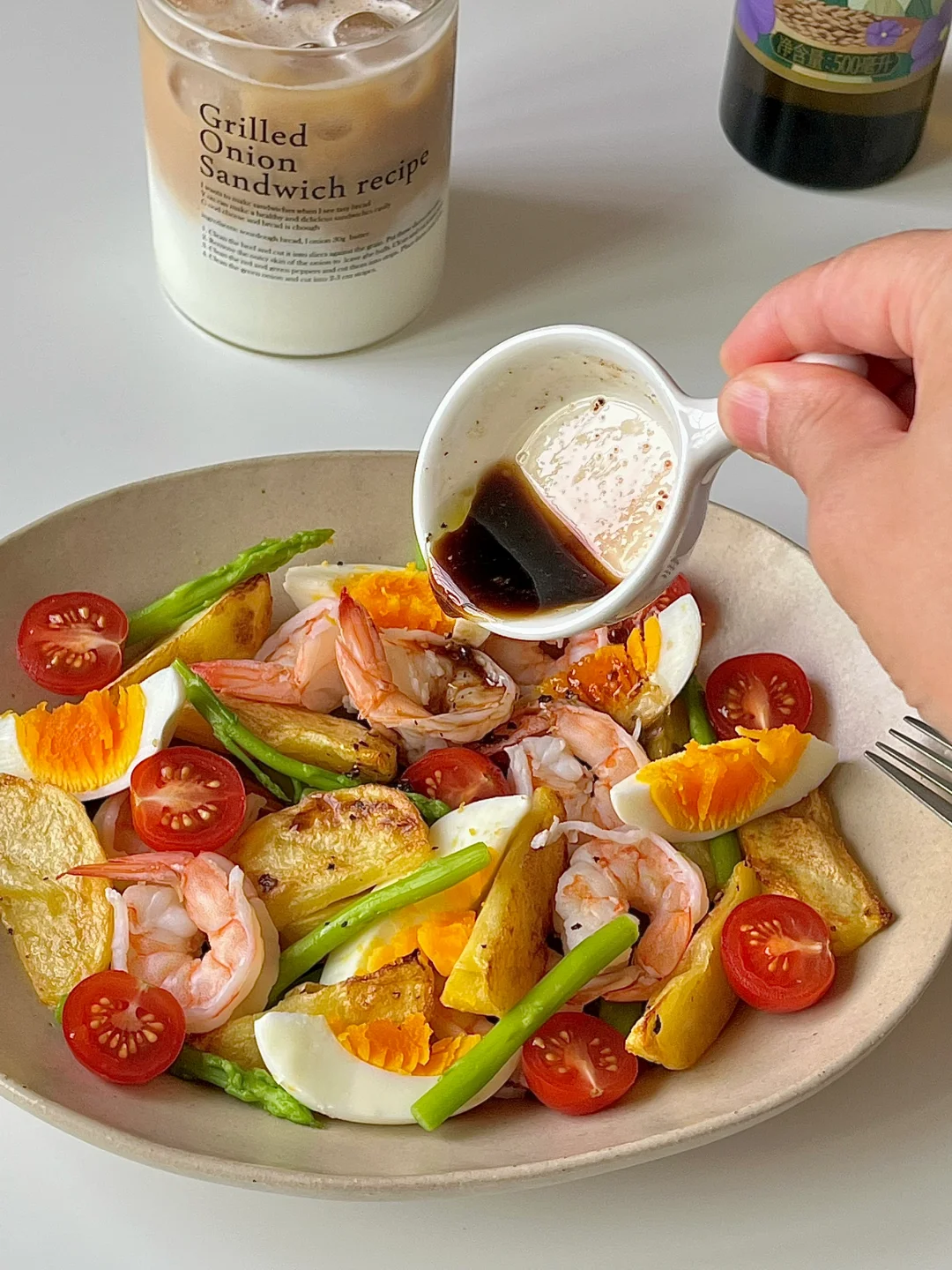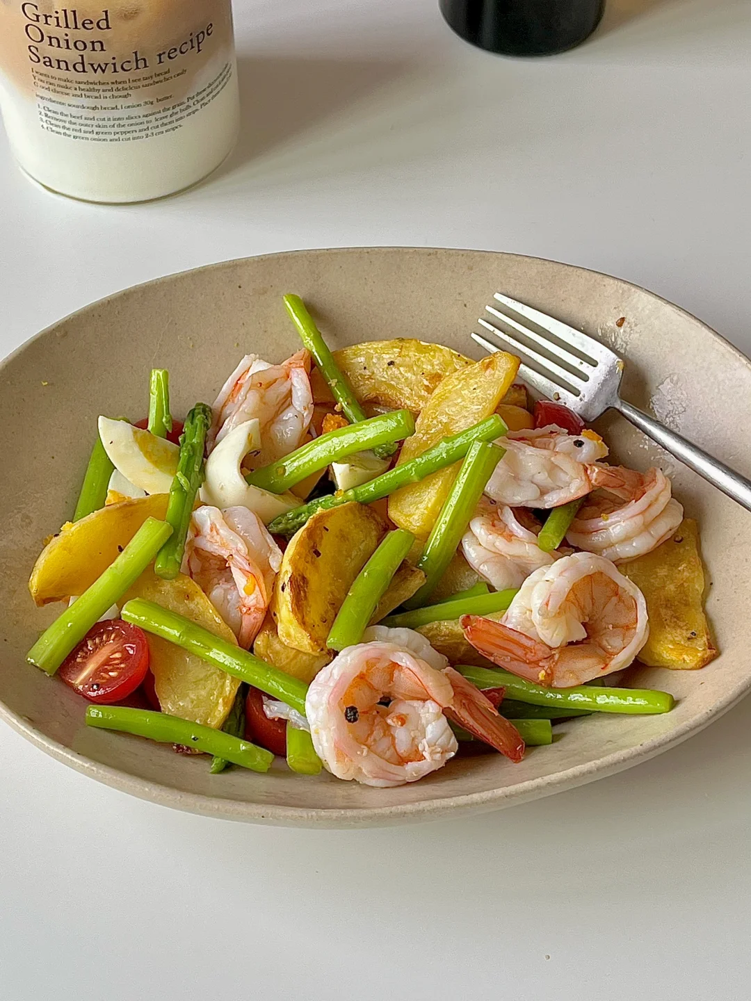 烤土豆虾仁芦笋鸡蛋沙拉🥗