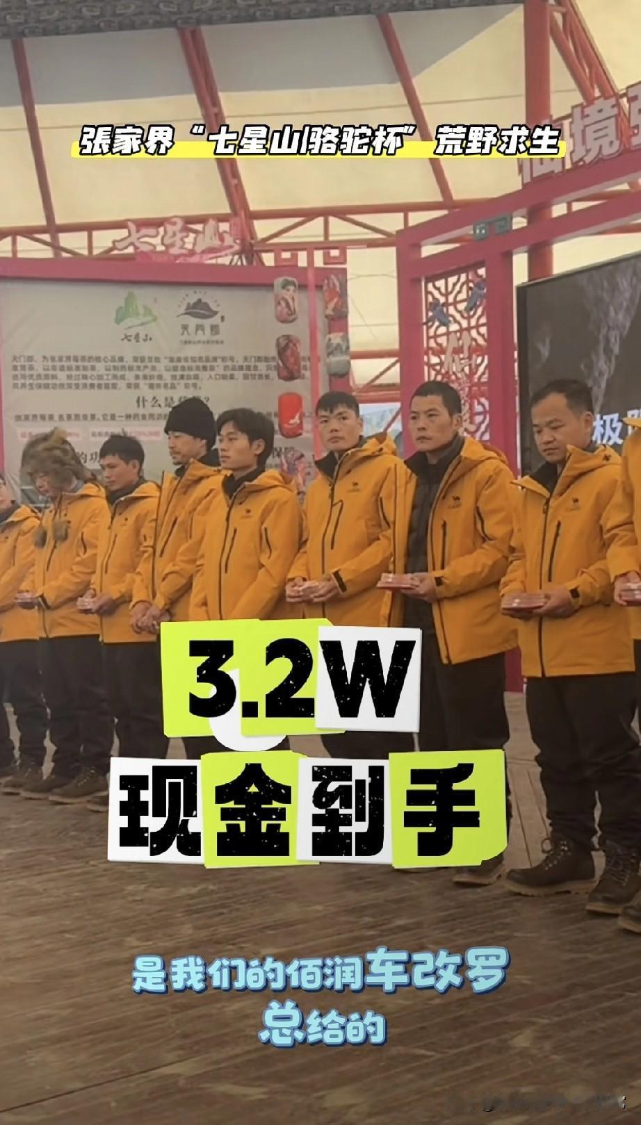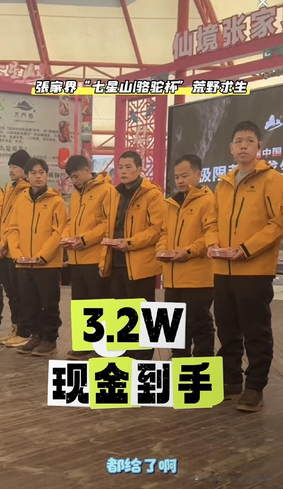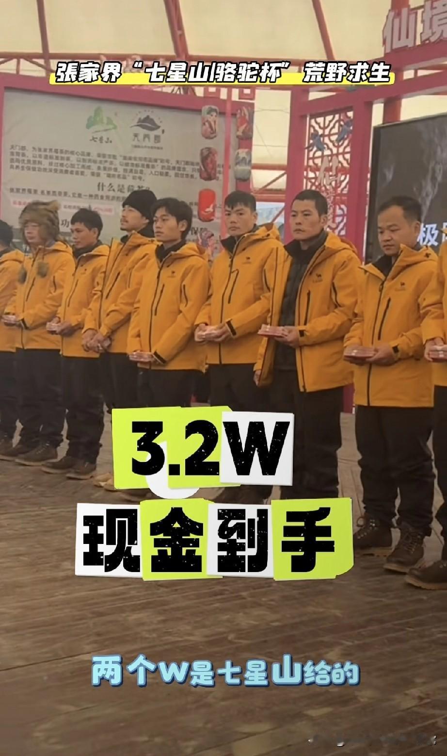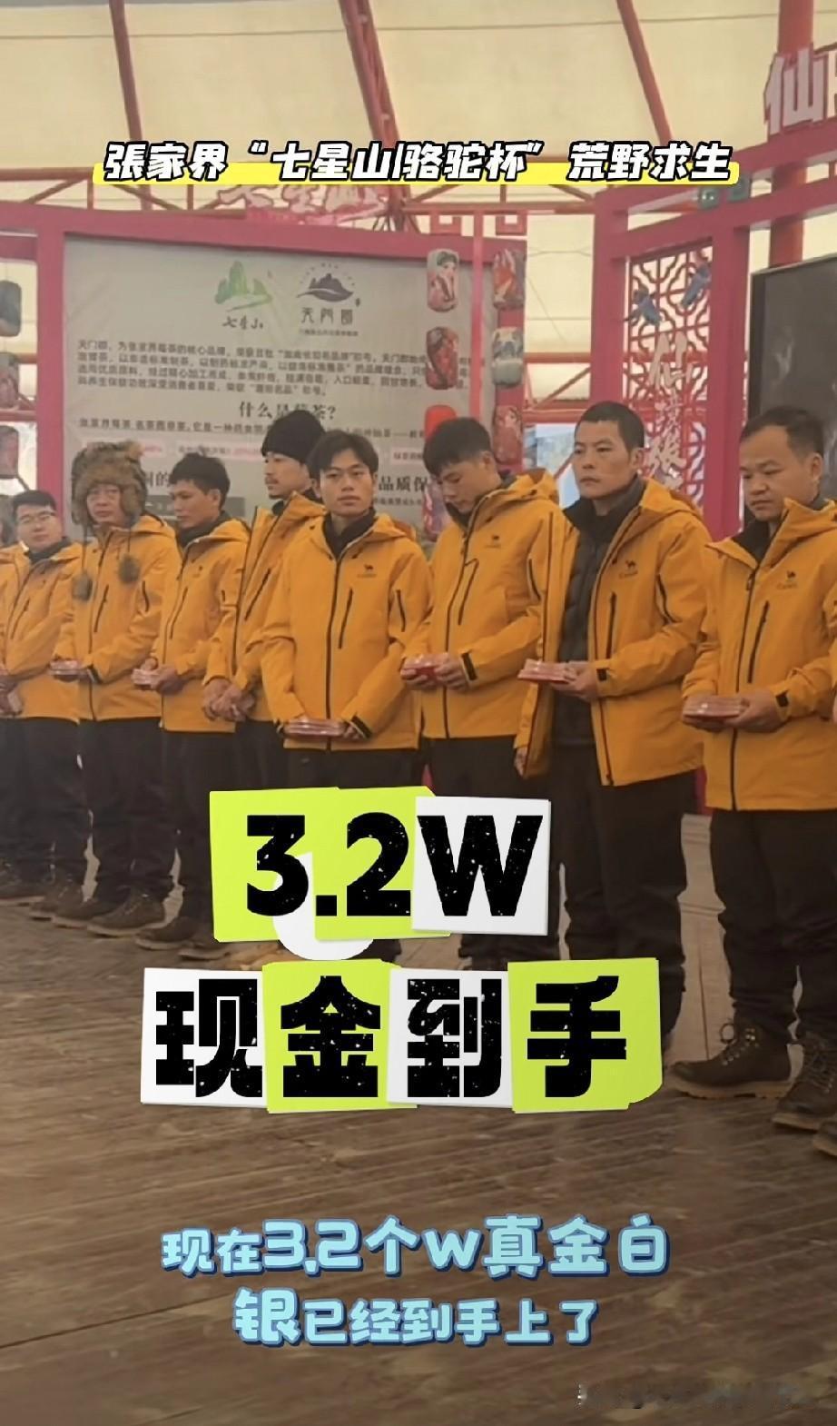 3.2万现金揣兜里!荒野选手要“硬刚到过年” 刚蹲到张家界七星山颁奖现场——14个穿黄冲锋衣的选手攥着现金站成排,镜头扫过的时候,有人手指都在抖。3.2万真金白银到手,有人喊“这钱够我干半年活了”! 之前在山里啃野果、冻得打哆嗦的糙汉们,现在腰杆挺得笔直,弹幕笑疯:“这是拿了‘卖命钱’,决赛要往死里刚啊!”还有人补刀:“估计这群人连过年都不想回家了,奖金香过团圆饭。” 不过也有人犯嘀咕:户外比赛发这么高现金,是真靠选手实力撑场面,还是拿奖金当噱头炒热度?毕竟现在观众看的是“真求生”,不是“钱堆出来的热闹”。 你们说——这3.2万是“实力应得”,还是“流量道具”?要是有这机会,你愿意在山里熬到过年换这笔钱吗?