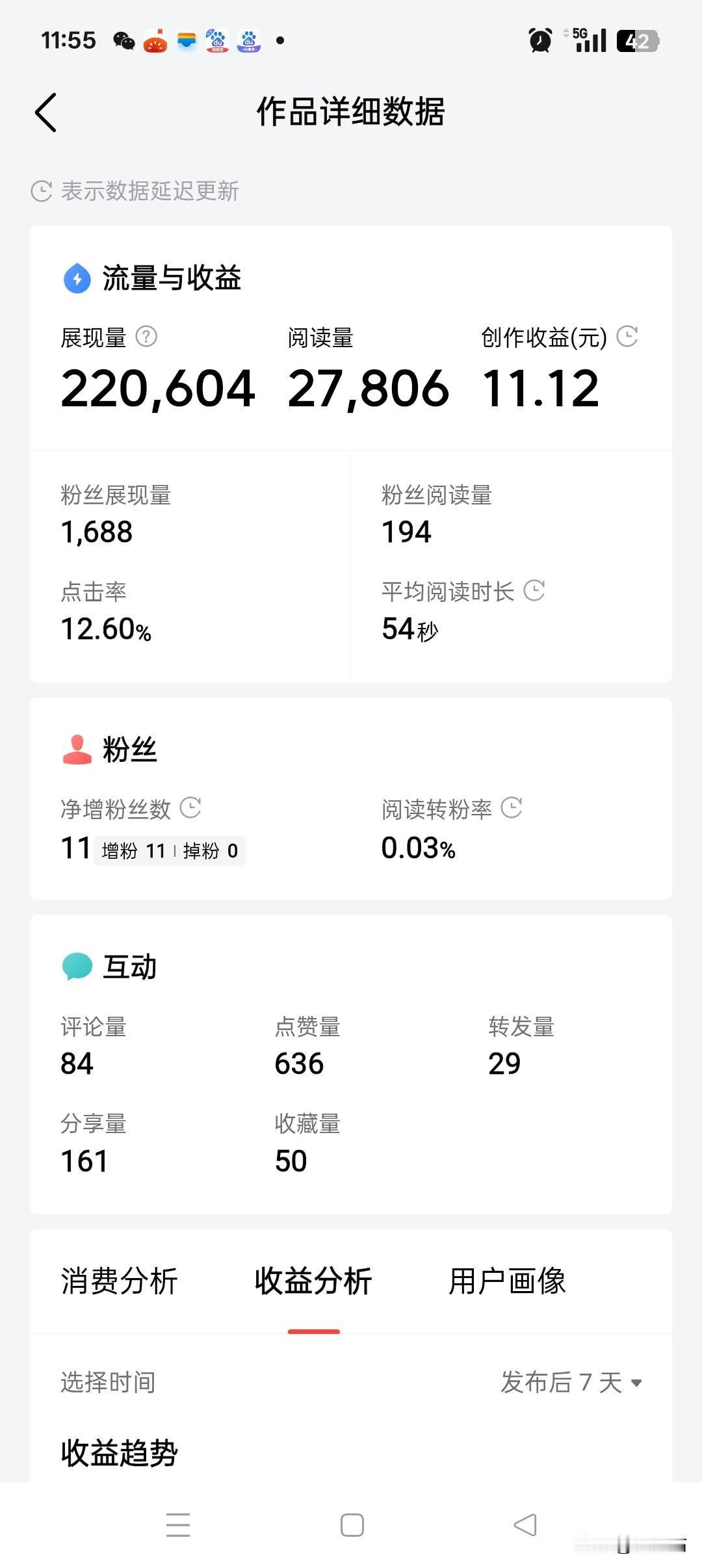 这流量收益我是越来越不懂了! 4万阅读量只换来0.06元! 而2.8万阅读却拿到11.12元 这种落差足以让每个创作者心里犯嘀咕:平台的收益秤,到底准不准? 不是对流量少的不满,而是对「努力不对等」的疑惑。那组4万阅读的数据,评论292条、点赞437个,互动热度明明很高,可平均12秒的阅读时长像根刺,扎得人明白:原来读者「划走得快」,在平台眼里就成了「不值钱」的流量。反观另一组,54秒的阅读时长、636个点赞,读者愿意沉下心看内容,收益自然跟着水涨船高。 这种「不满」不是抱怨,而是创作者对「价值认可」的较真——我们要的从不是流量的数字游戏,而是让「用心创作的内容」能被平台算法公平看见,让每一次深度互动、每一秒停留时长,都能在收益里得到应有的回响。