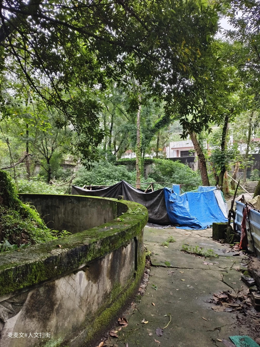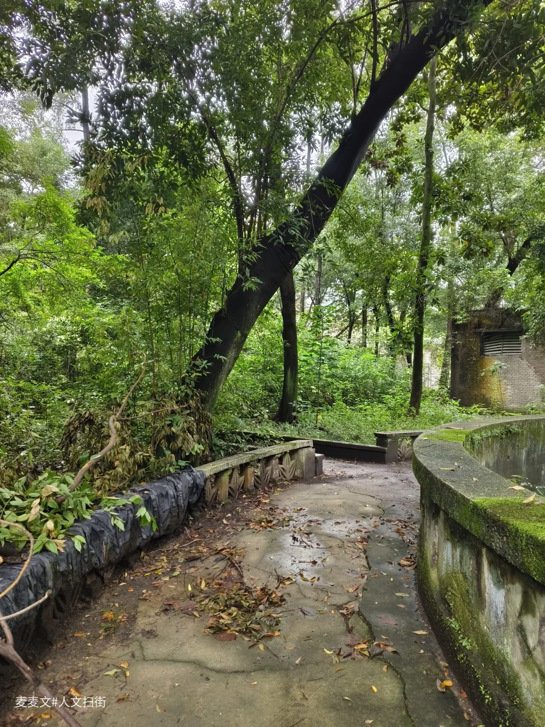 在重庆合川某化工厂深处,隐匿着一座时光停滞的废弃公园。干涸的水池像一只凹陷的眼窝,底部堆积着岁月的尘埃。假山嶙峋,却被藤蔓紧紧包裹,似是从时光深处生长出的怪物。