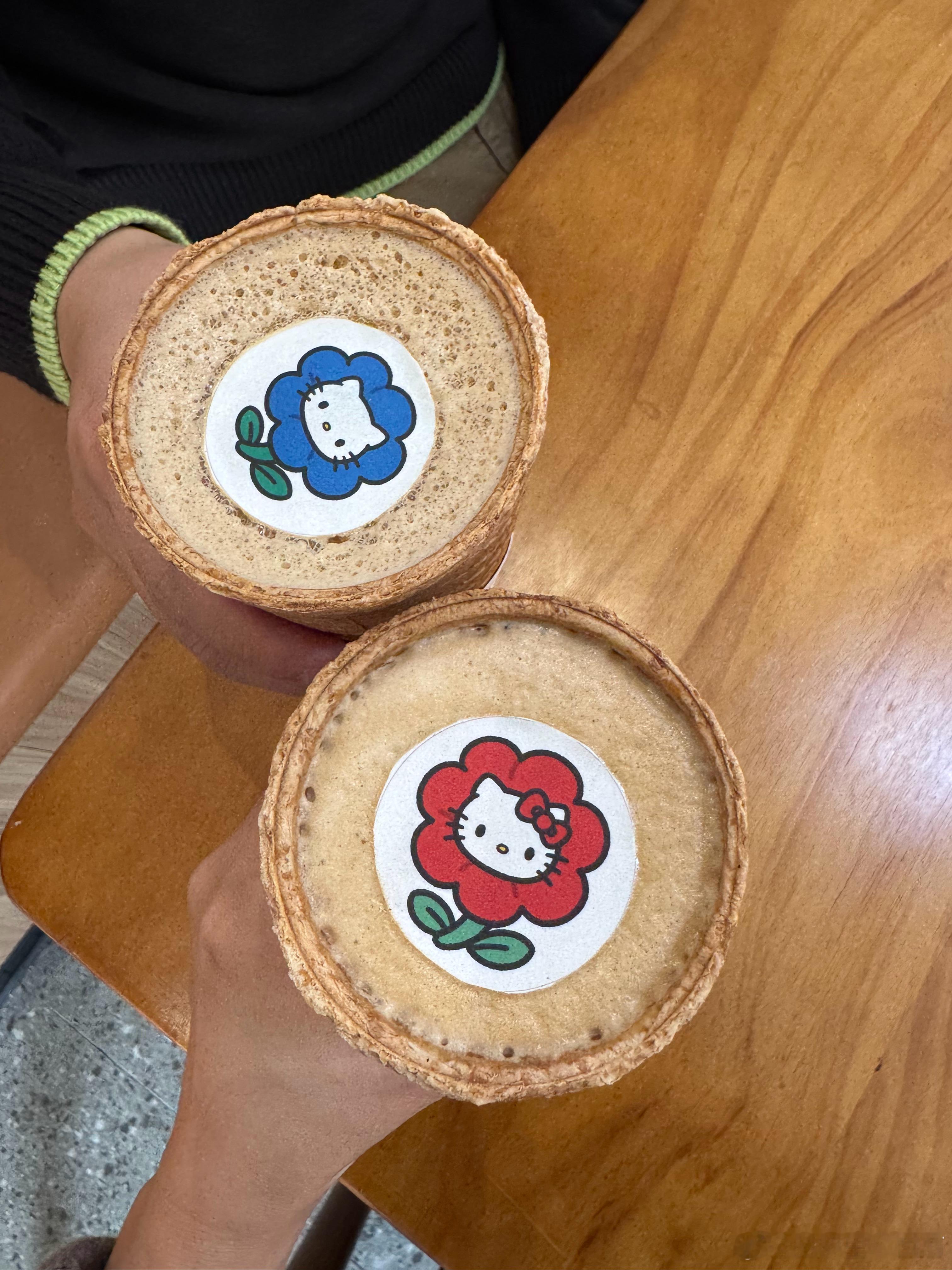 和阿莫斯约会回来了星星人贴纸没了只有 kitty 猫贴纸了这两杯 42元其中饼干