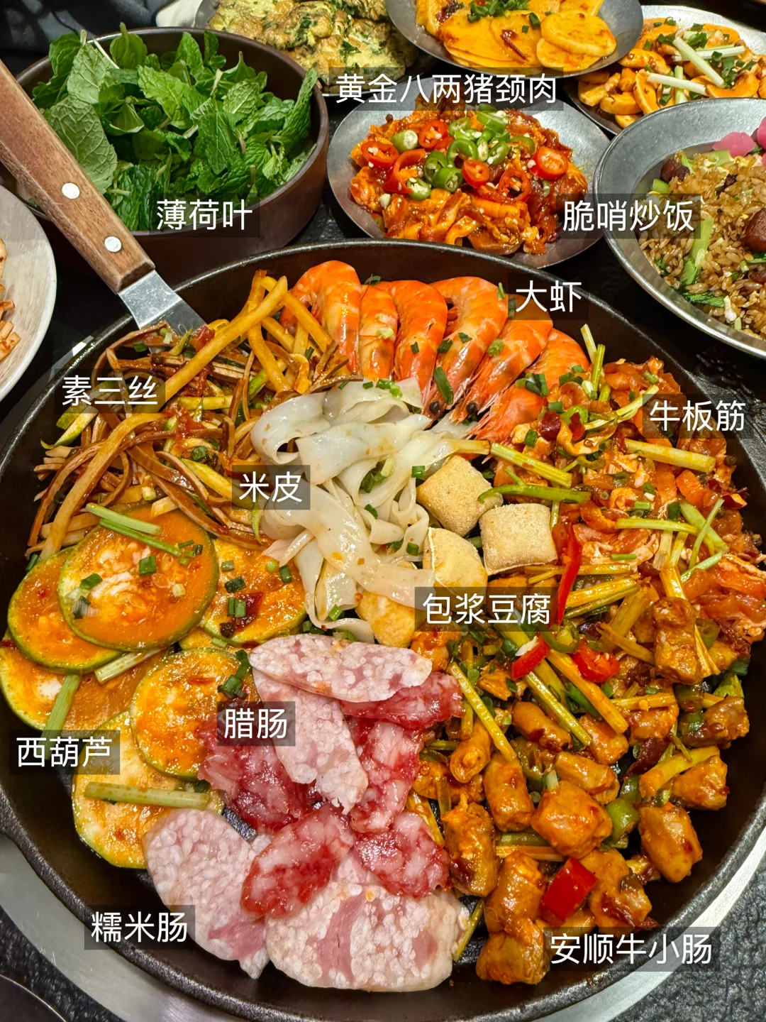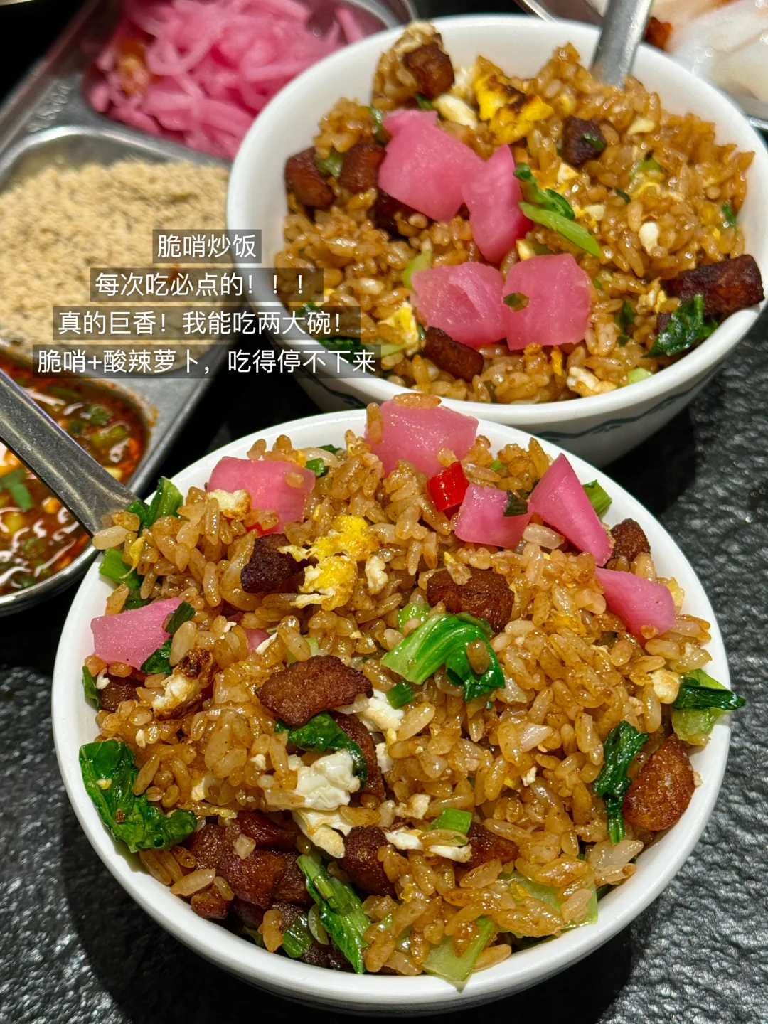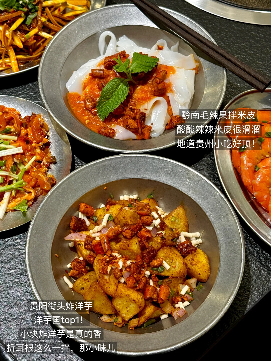 拜见贵阳铁板烧大王!!隔一周就会馋,常吃常新! (第一次去吃可以参考我的点单测评,全实话! ✔️个人觉得靠谱每次都点的: 1️⃣脆哨炒饭 每次去一定会吃的!!!脆哨+酸萝卜,我连吃两大碗饭!很本地的味道! 2️⃣安顺屯堡牛小肠(油滋滋的,很有嚼劲! 3️⃣荤三丝&素三丝 4️⃣贵州冰浆(强推芒果🥭和黄瓜的,贼清爽 还有新出的水果奶油三明治,好可爱! 🍸苹果马天尼配铁板烧也是别样风味欸!