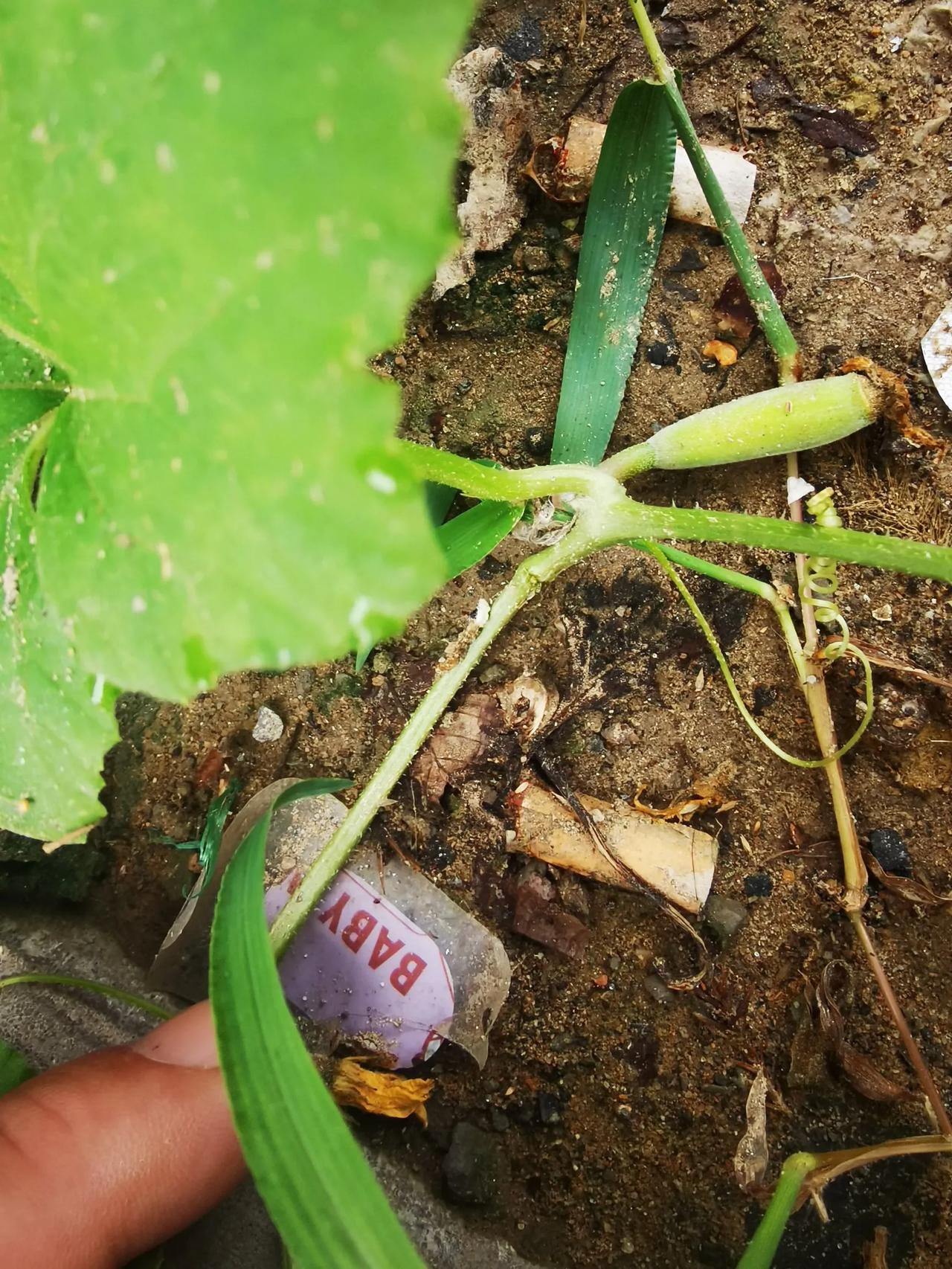 有谁认识这是什么瓜秧? 这是我在公路边看到的野生瓜秧,都开始结果了,但由于太小,目前不确定结的是什么果,是丝瓜,还是西葫芦呢?它到底是什么瓜秧?我看有点像丝瓜秧。大家说,对吗?
