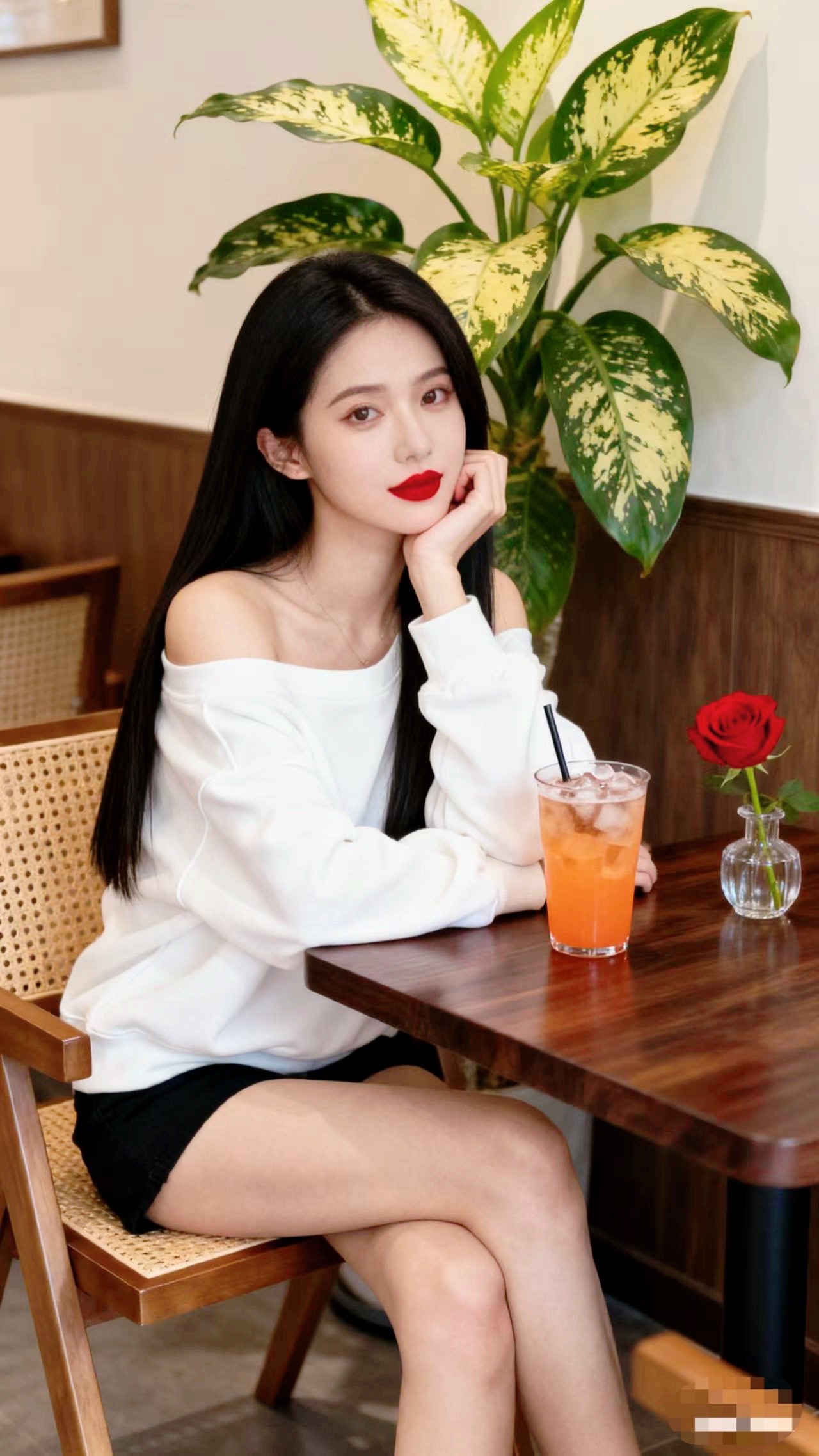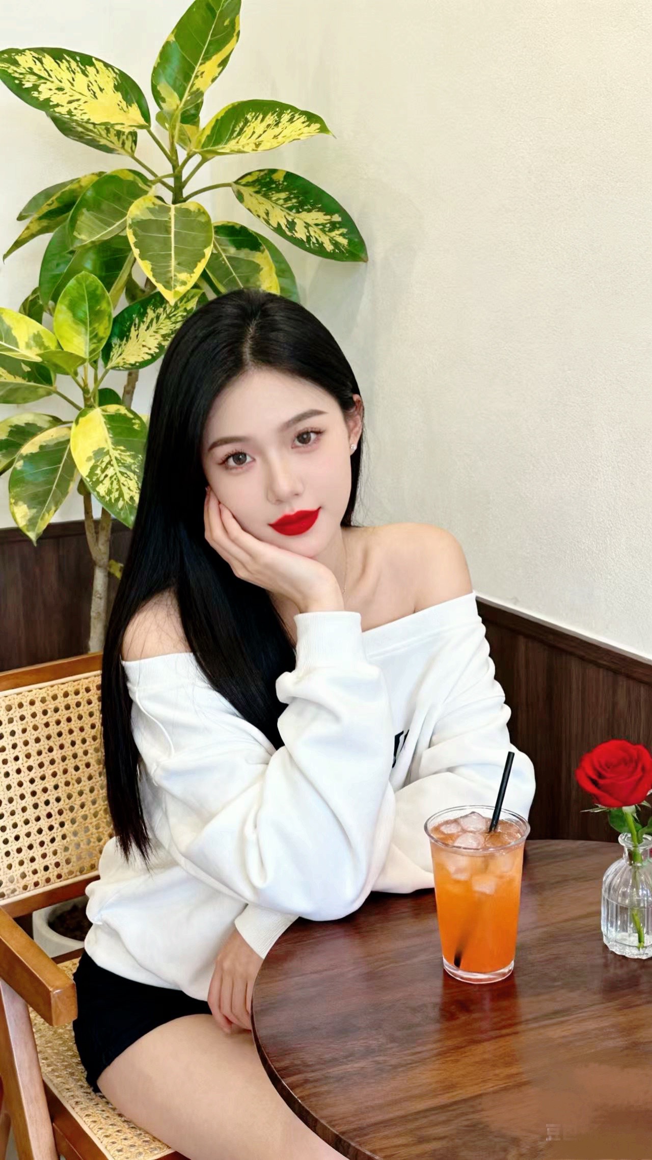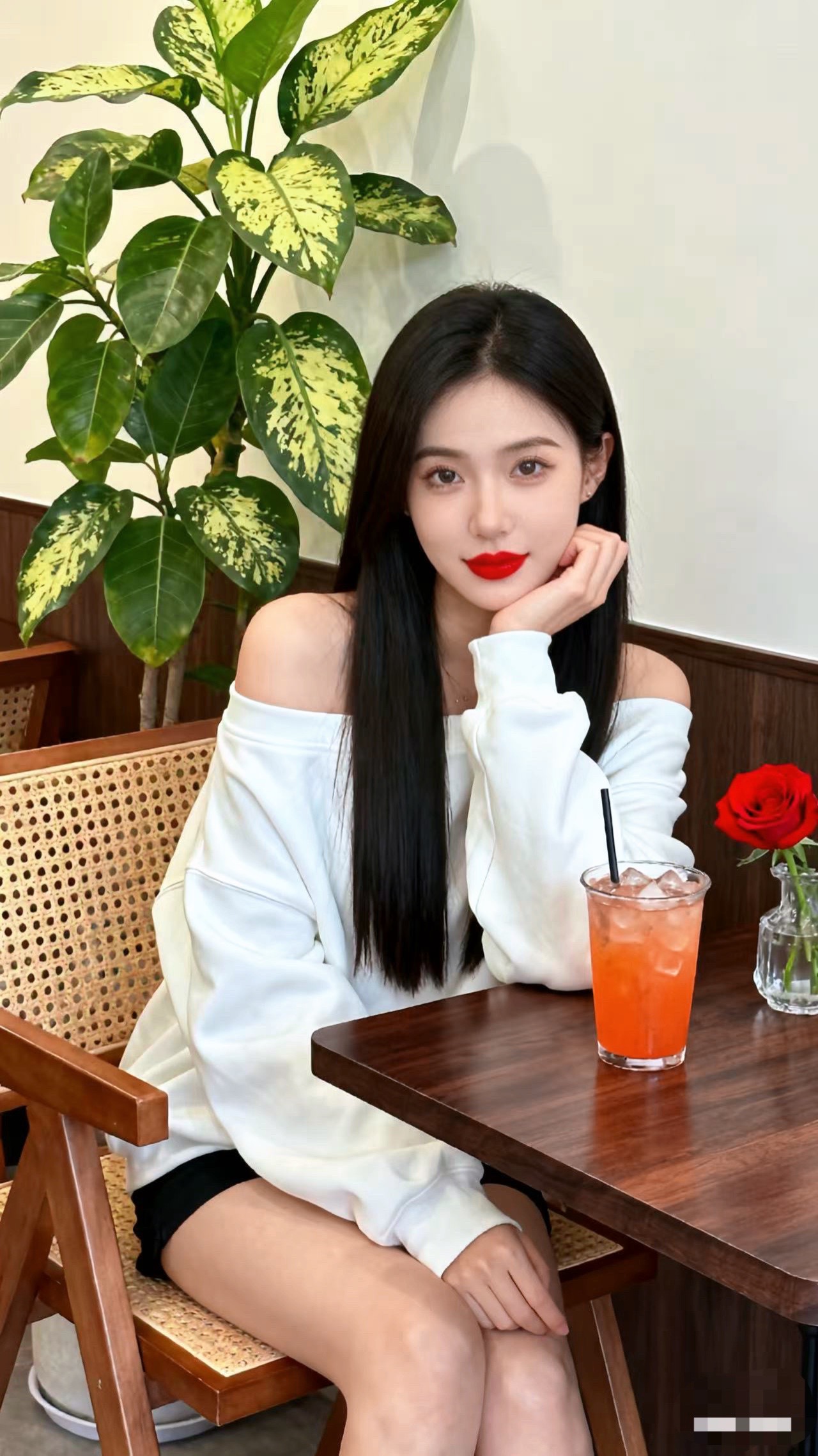 “白卫衣的慵懒和红唇的明艳撞了个满怀~冰饮的气泡、玫瑰的红,是今天偷闲时刻的小浪漫🍊”