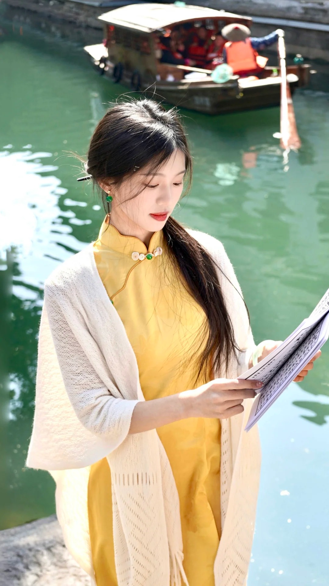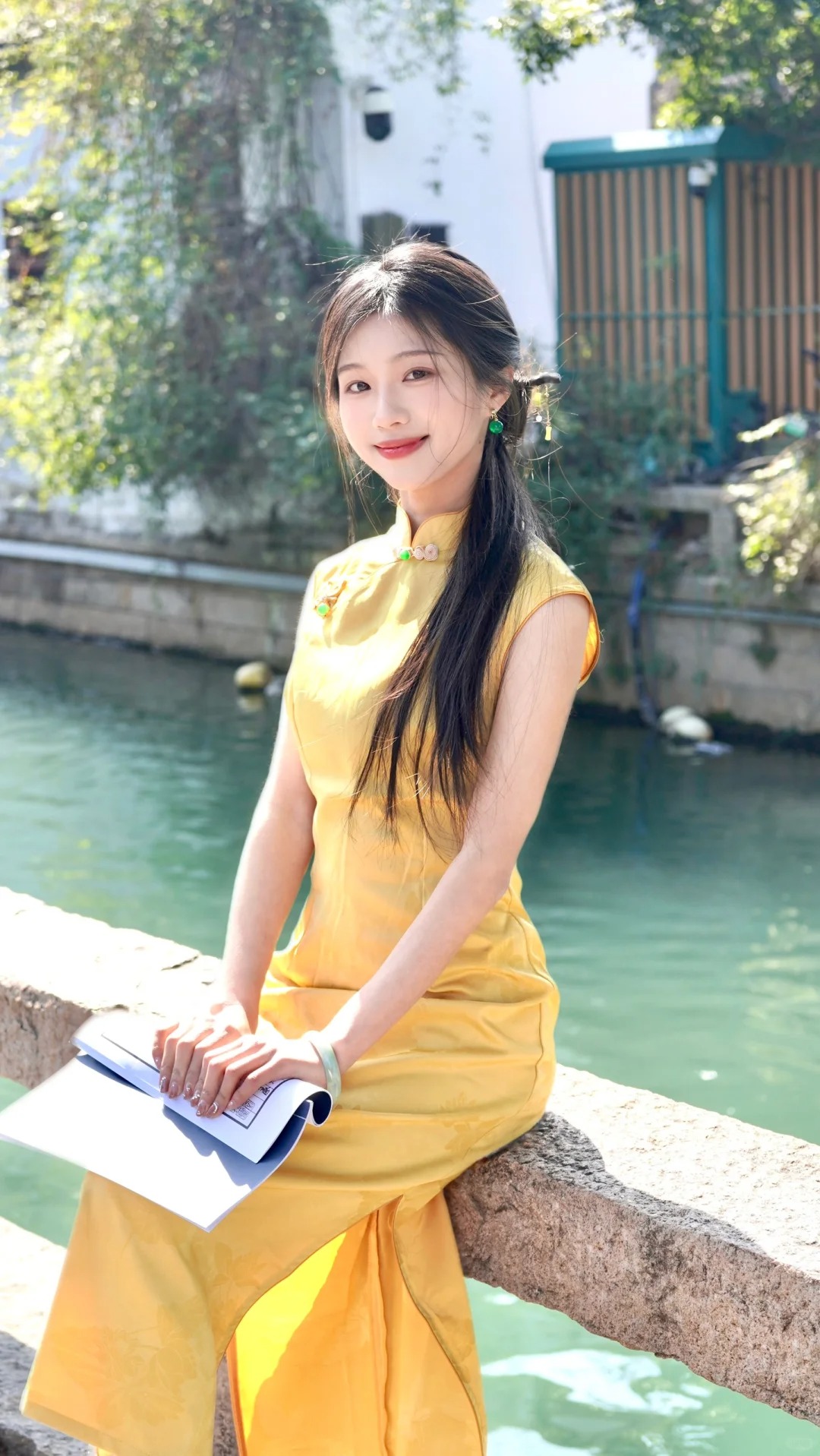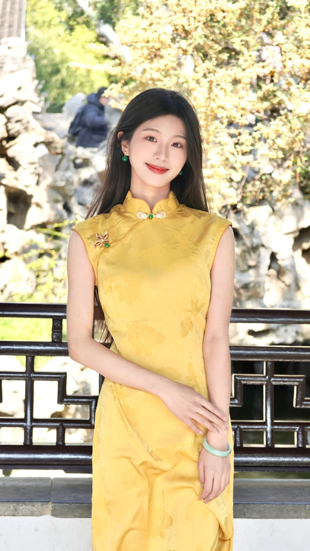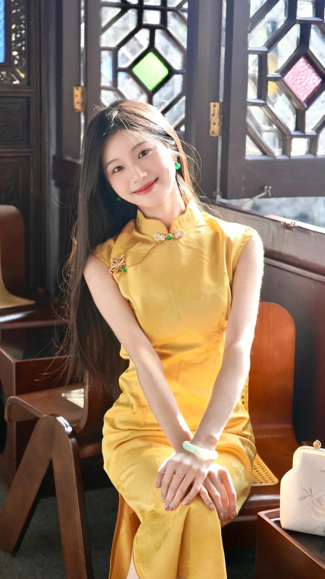 黄色旗袍太明艳啦!高清美女大长腿古典美美女漂亮迷人的旗袍漂亮的小姐姐,大长腿好身材性感女神