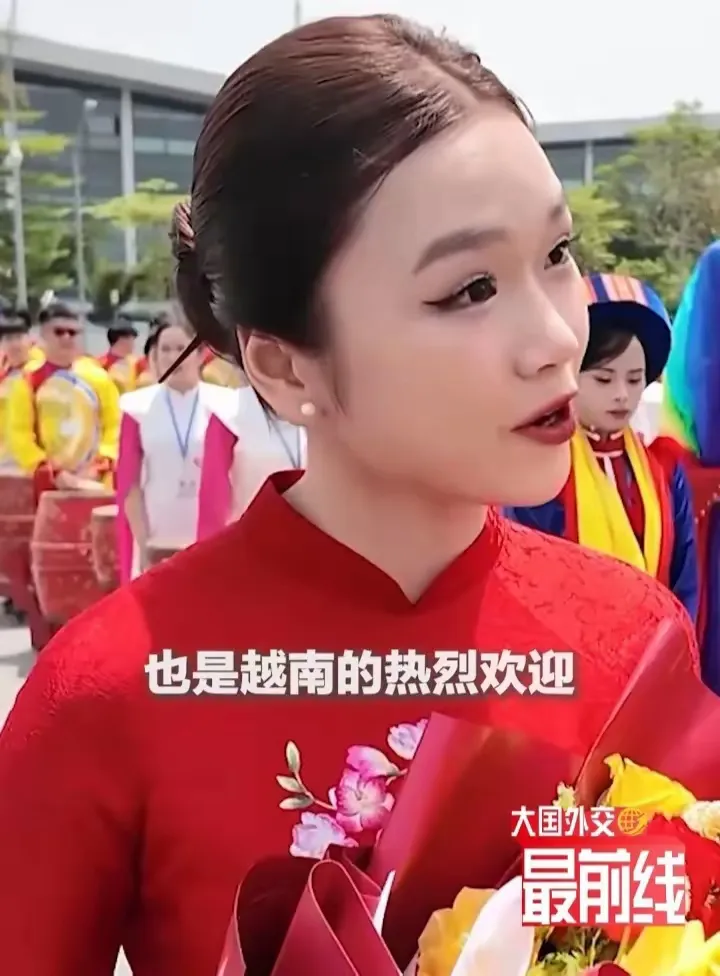 踏入越南的机场,一抹明艳的中国红瞬间抓住了众人的目光。那是一位越南小姐姐,手捧着鲜花,笑意盈盈。她站在欢迎队伍的最前列,是第一个向来宾开口致意的人。不仅面容姣好,更令人惊叹的是,她能说一口流利的中文,每一个词句都清晰而自然。 从她的着装到现场的布置,不难看出这次迎接的规格极高。身着代表喜庆的中国红服饰,她的每一个举动都传递着热情与真诚,也让我们真切感受到越南人民的热忱。中国与越南,山水相连,既是亲密的邻居,更是志同道合的同志与兄弟。 目睹这温暖的场景,身为中国人,一种自豪之情油然而生。这样温馨的互动,不仅是一次简单的迎接,更是两国友好情谊的生动展现。衷心期望中越两国未来能不断深化合作,携手共进,让合作的成果惠及两国人民 ,让这份深厚情谊在岁月中持续绽放光彩。