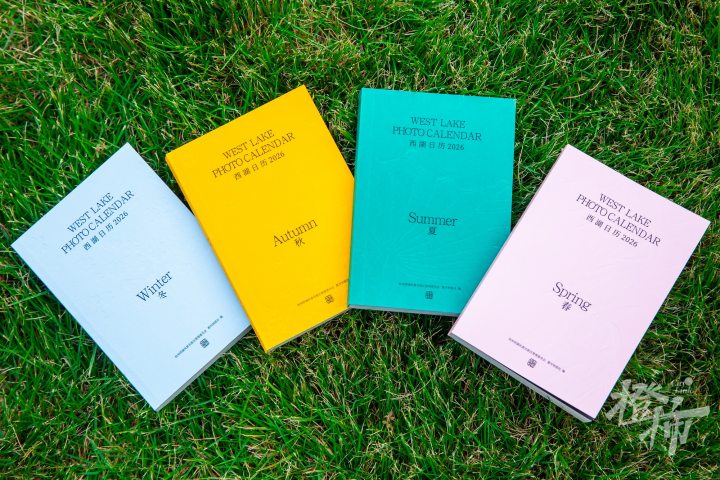 此次《西湖日历2026》除了有专业摄影师独家呈现的四季美景,日历页面还采用扁平化设计风格,每页配以历代文人诗词。