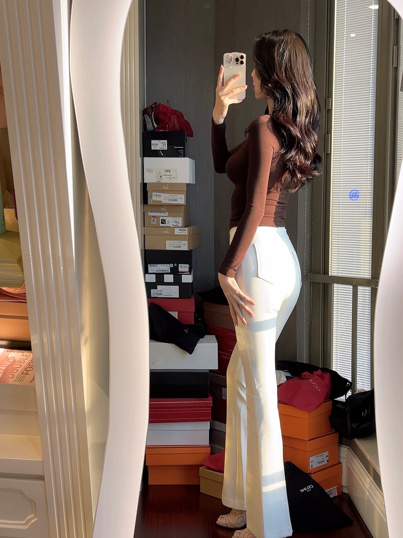 贺聪机场look!短开衫叠穿白色打底,露腰设计精准拿捏腰线小心机,高腰直筒裤瞬间
