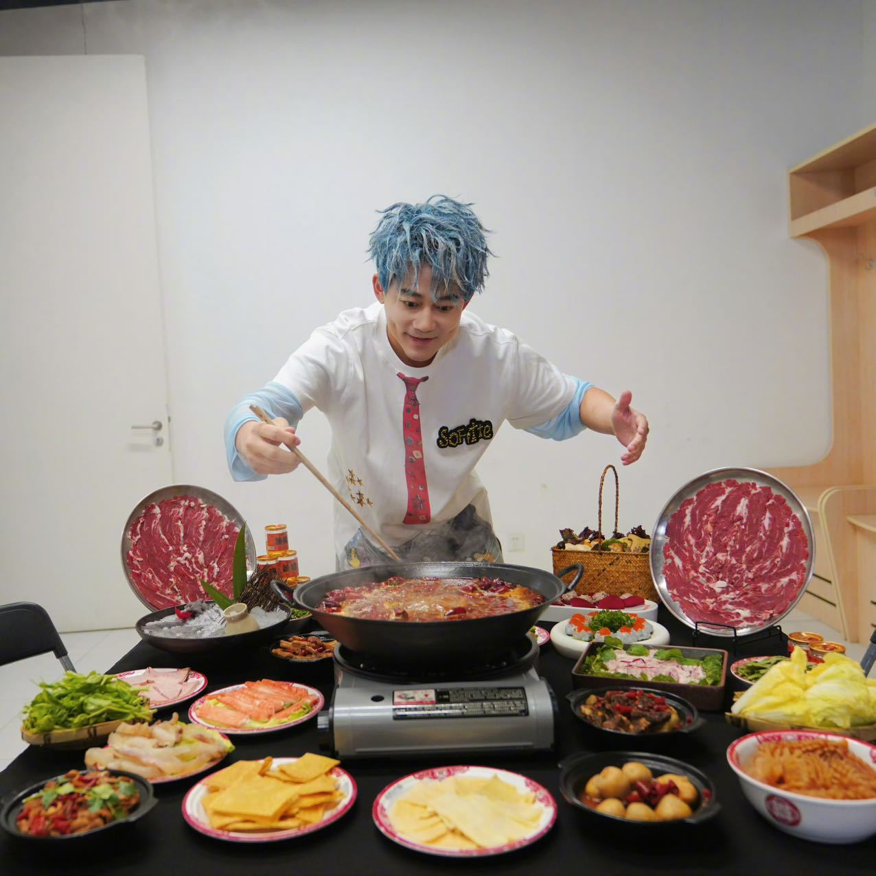果然不管谁到了重庆都离不开一顿滚烫的麻辣火锅,明天苏醒Nothing More巡演重庆站正式开唱,今天他发的微博就混入了一张火锅桌上大吃特吃的“彩排照”,难道哥是在火锅桌上彩排的吗!蓝发苏醒手持筷子稳准狠伸入辣椒红油翻滚的火锅汤,目光炯炯一脸期待,肥牛、虾滑、毛肚等大热火锅食材摆了一整桌,看得出来醒哥“吃商”极高,到了重庆来一顿大名鼎鼎的重庆火锅真的很“巴适”了!