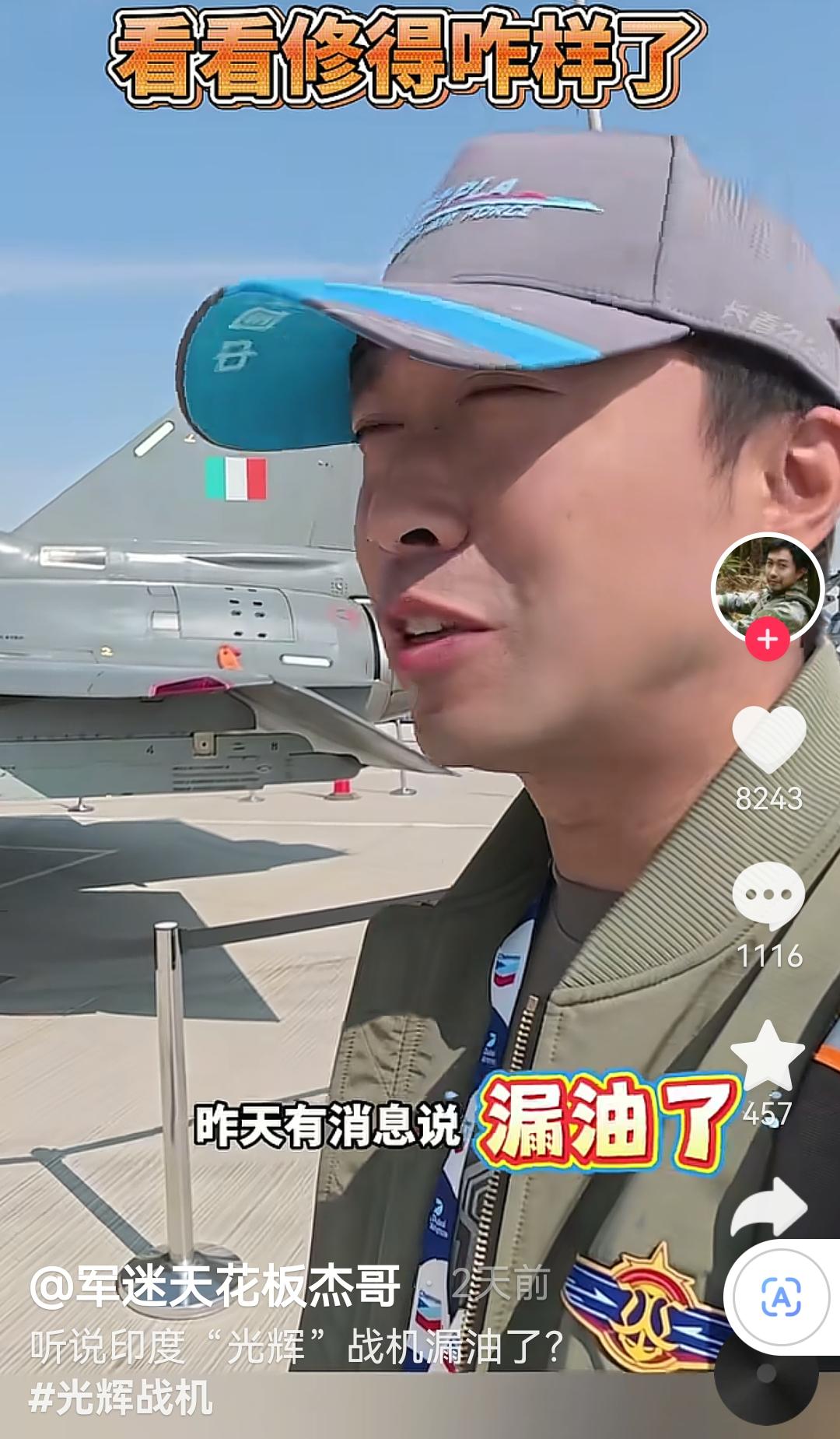 看到印度国产“光辉”战机在迪拜航展上坠毁的视频,前两天还正好刷到了一个军事博主的