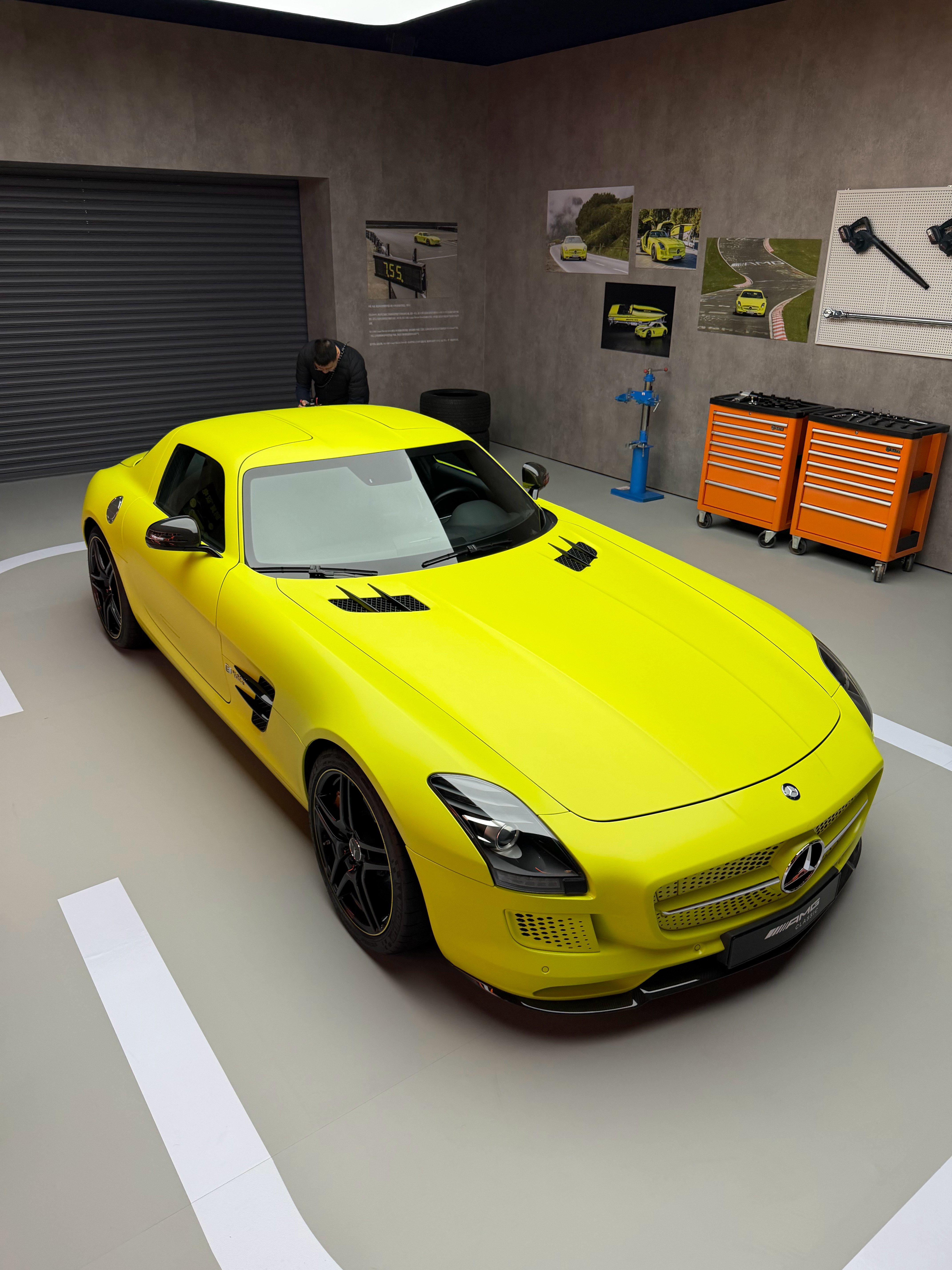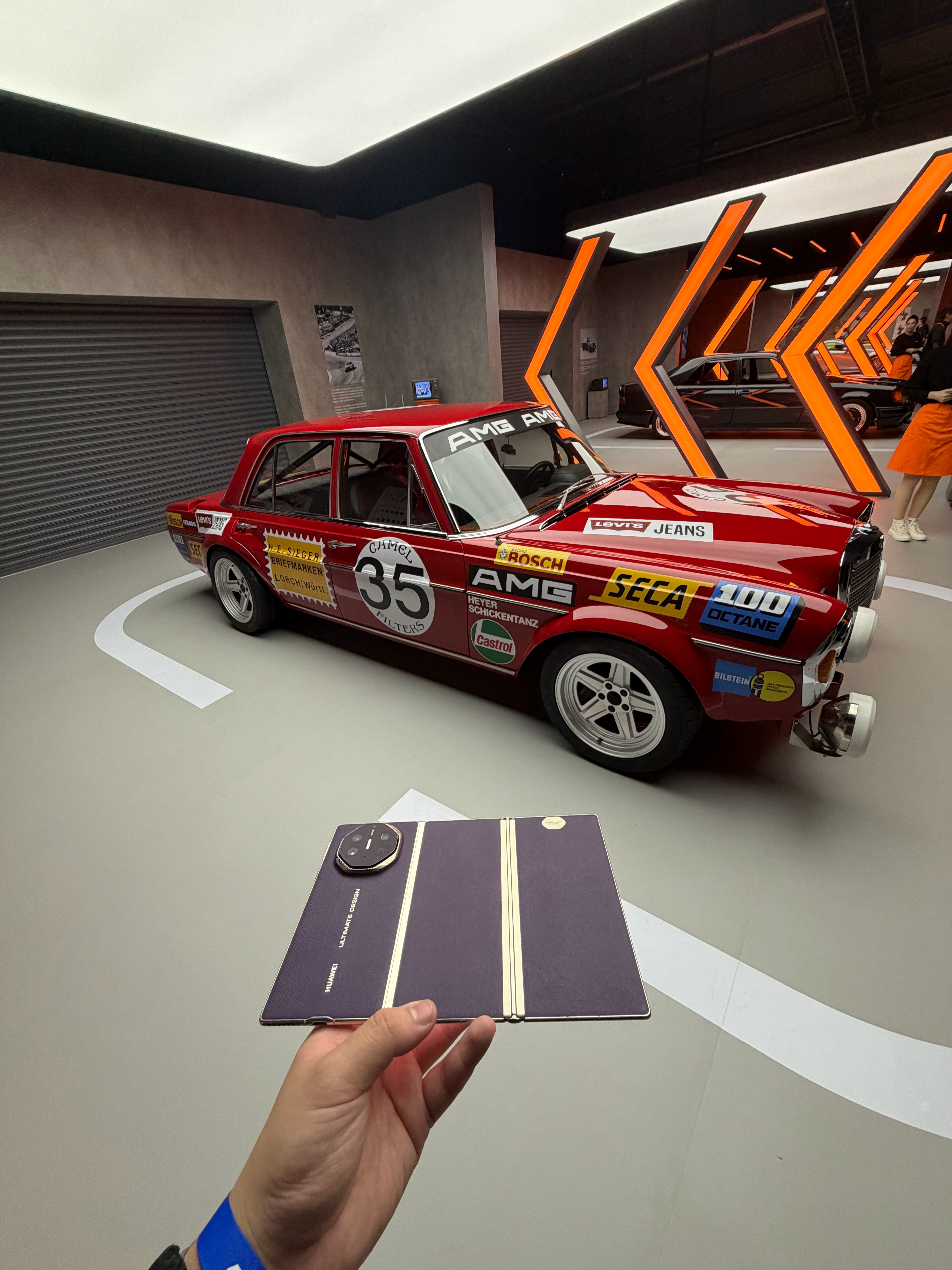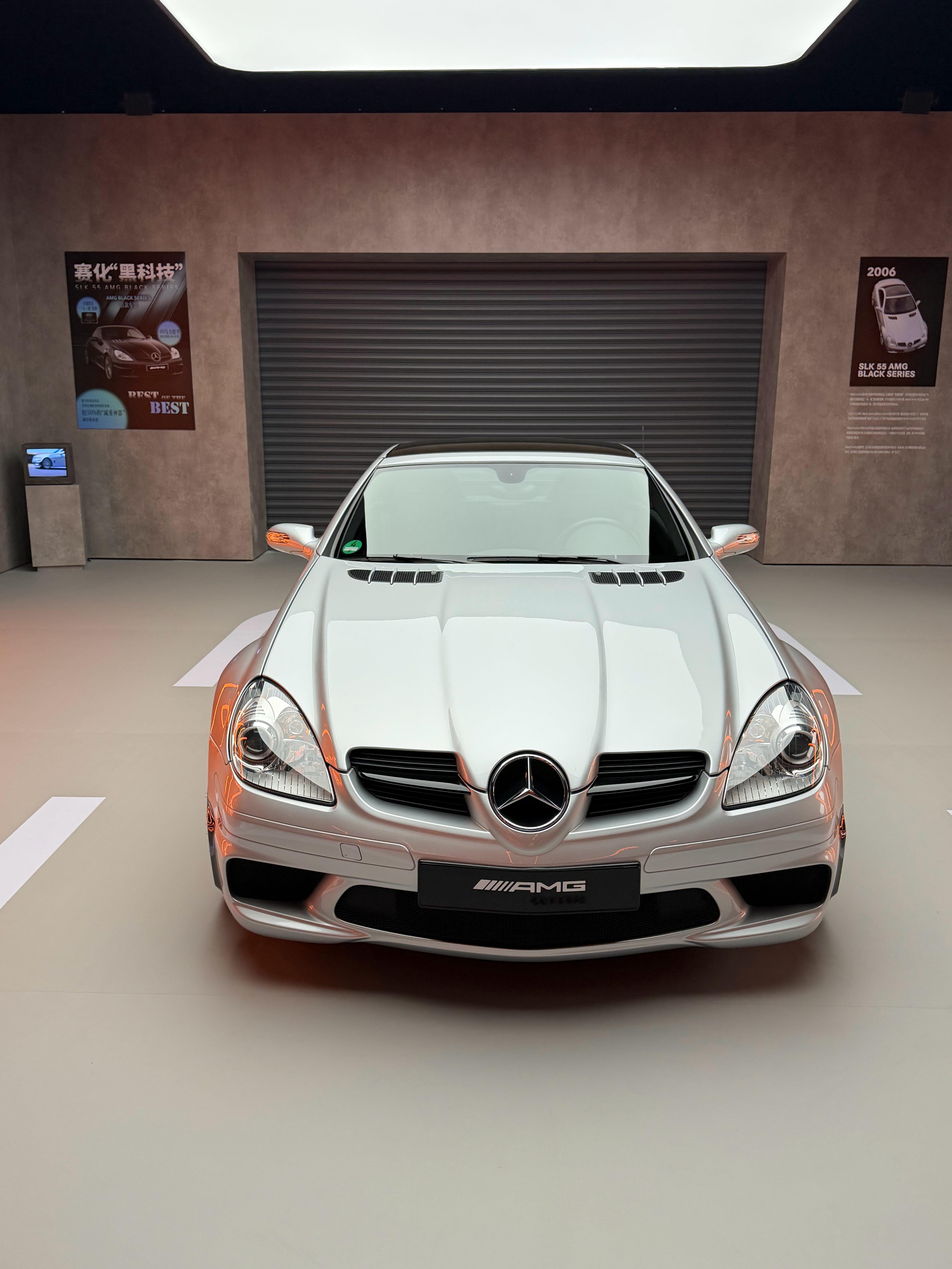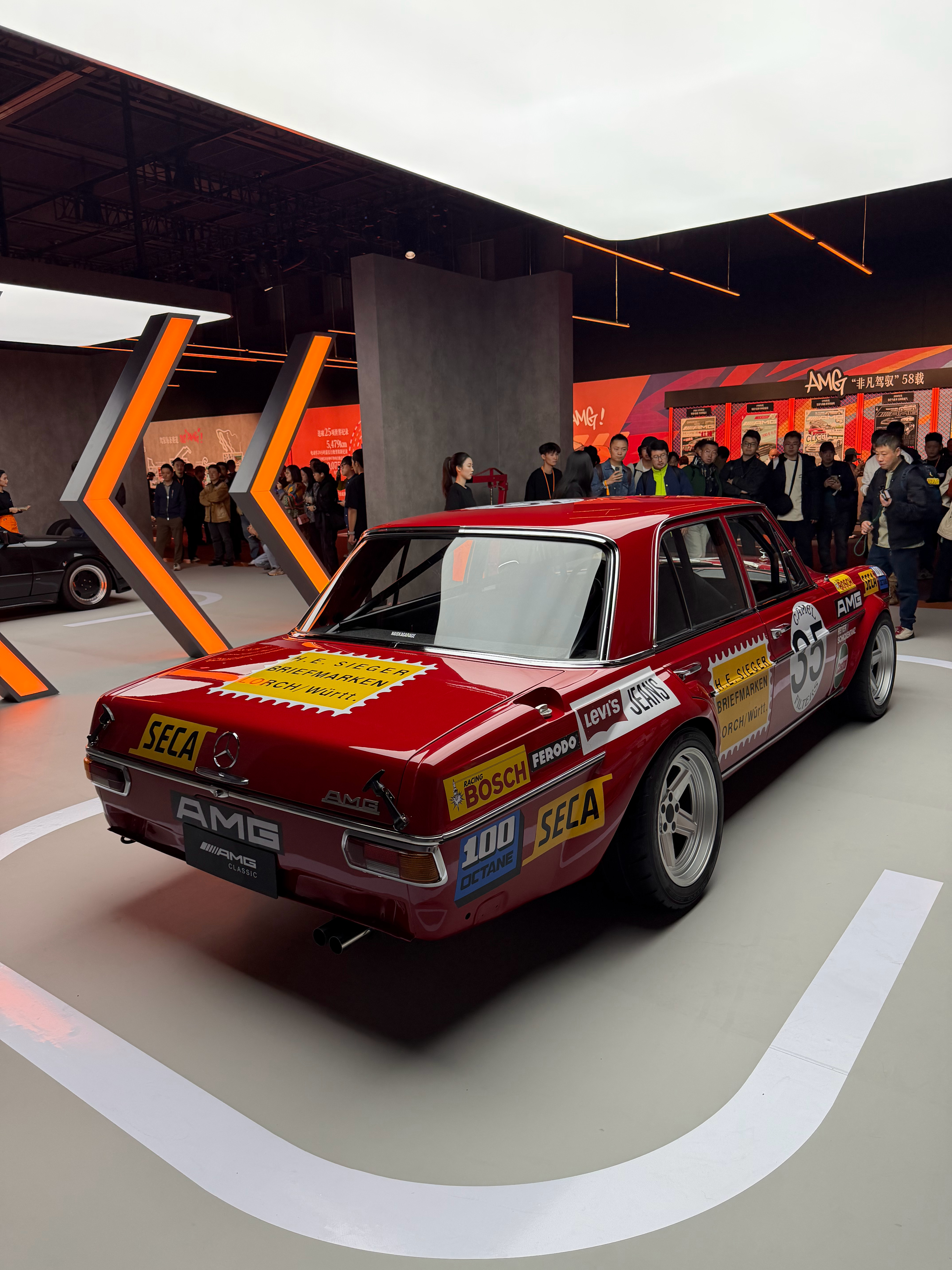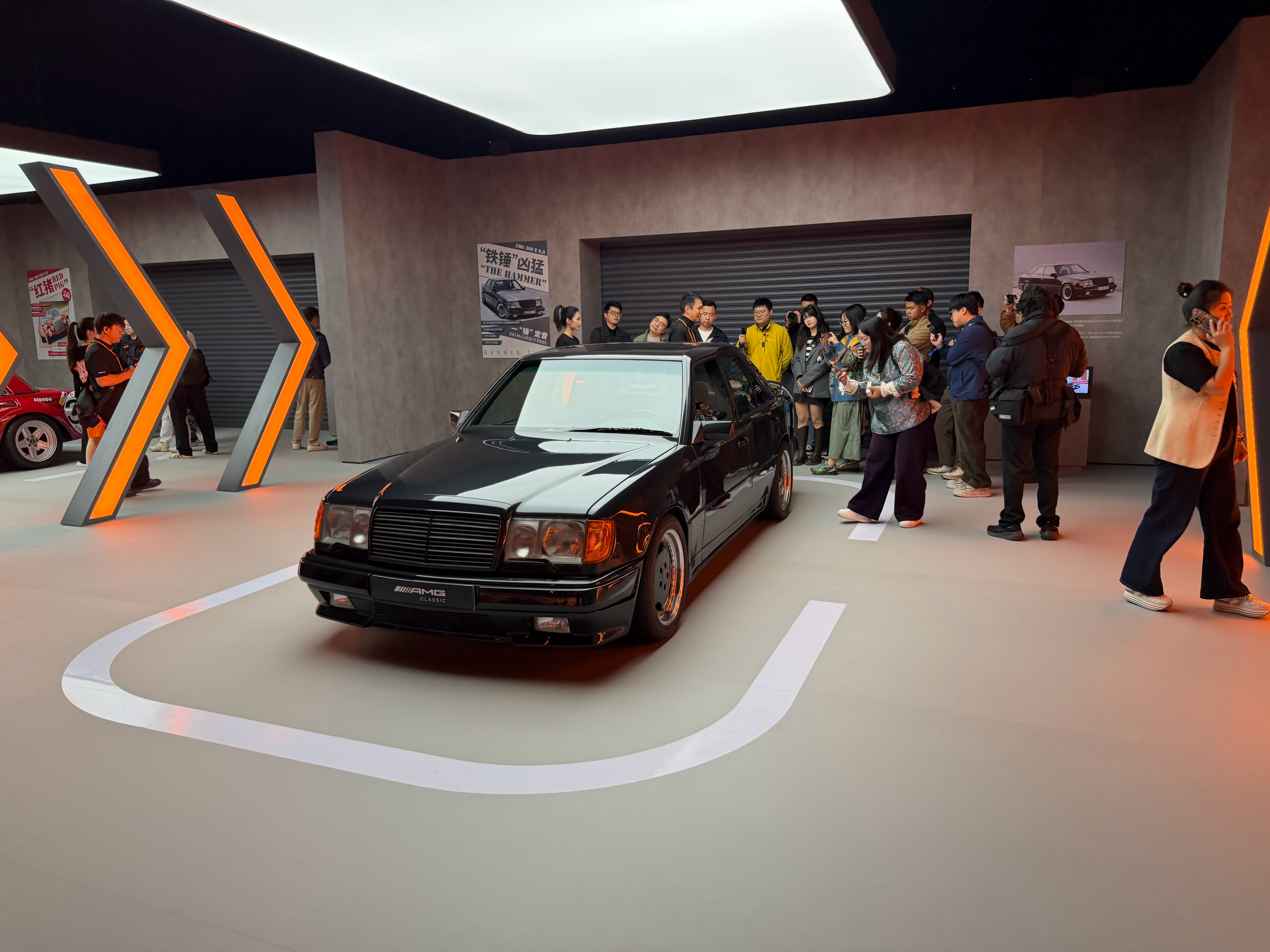 奔驰在AMG GT xx入口两侧分别放置了4台经典老车助阵。非常有趣①1971年红猪▶️代表着奔驰的反叛精神②1986年300 E 6.0▶️奔驰第一台大排量性能轿车③2006年SLK 55▶️奔驰经典燃油跑车④2013 SLS electric Drive▶️纽北第一台量产电动超跑所以说AMG自古就是反叛。电车也是AMG