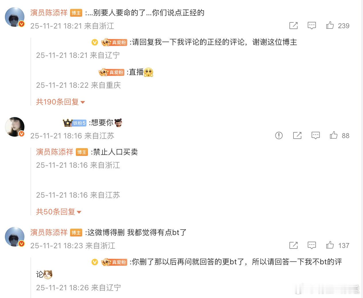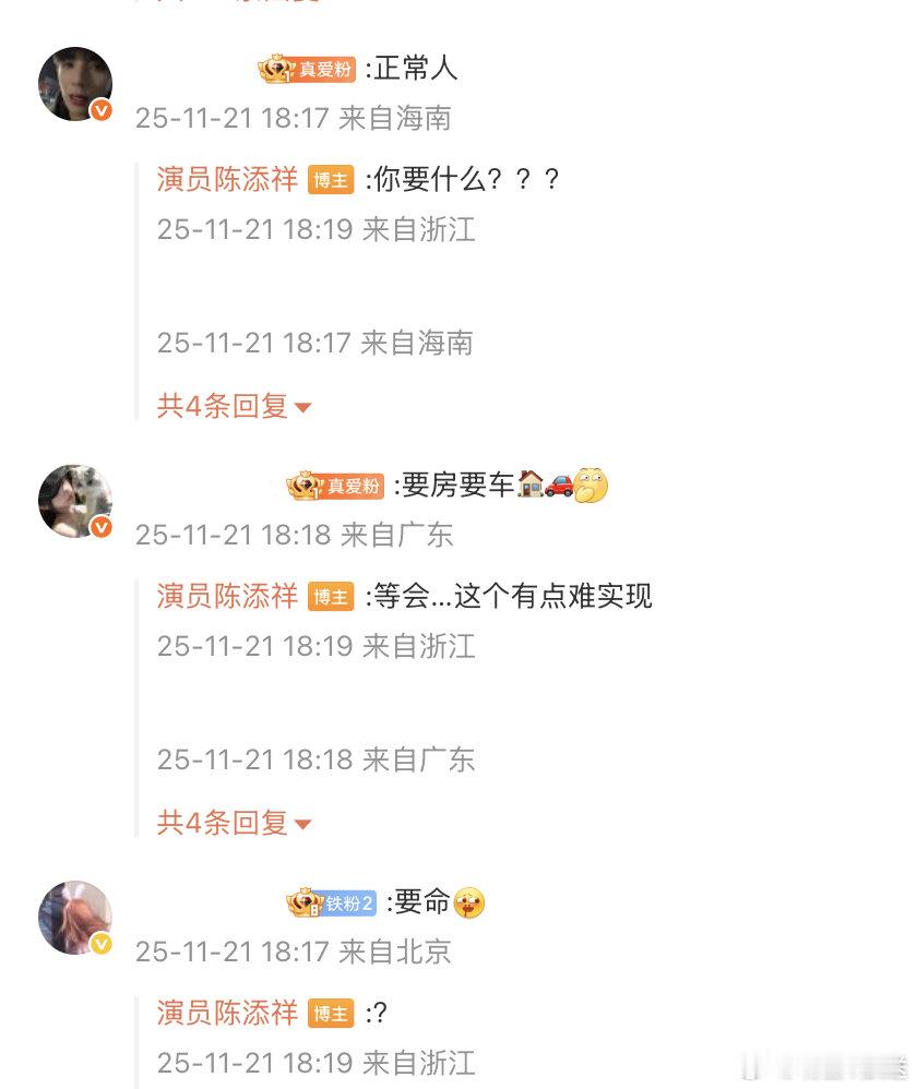 陈添祥发博问大家想要什么礼物,评论区0个人放过陈添祥