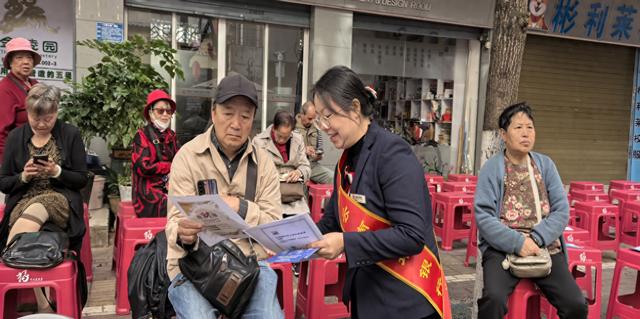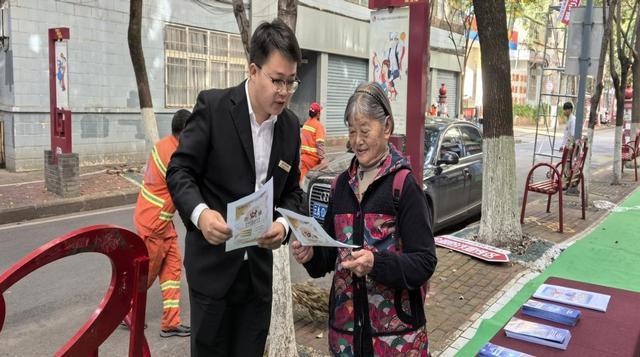 (10月29日,昆明关上支行在“金融助老服务驿站”发放宣传折页)