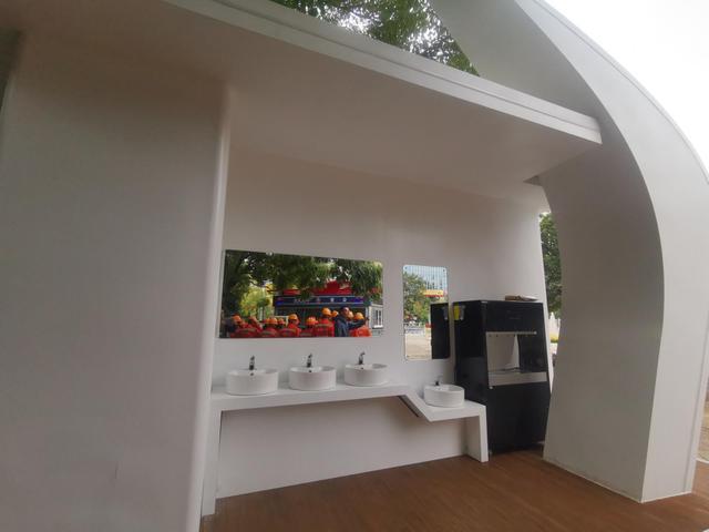 该设施位于呈贡洛龙公园,占地34.72平方米,含4个洗手台、1套热水供应设备和休息空间。是一个集休憩、饮水、关怀于一体的多功能保障中心,成为环卫工人、游客休息整顿、放松身心的温暖场所。