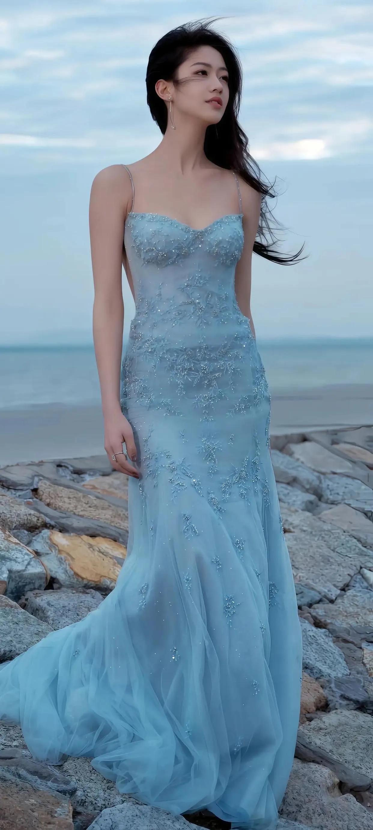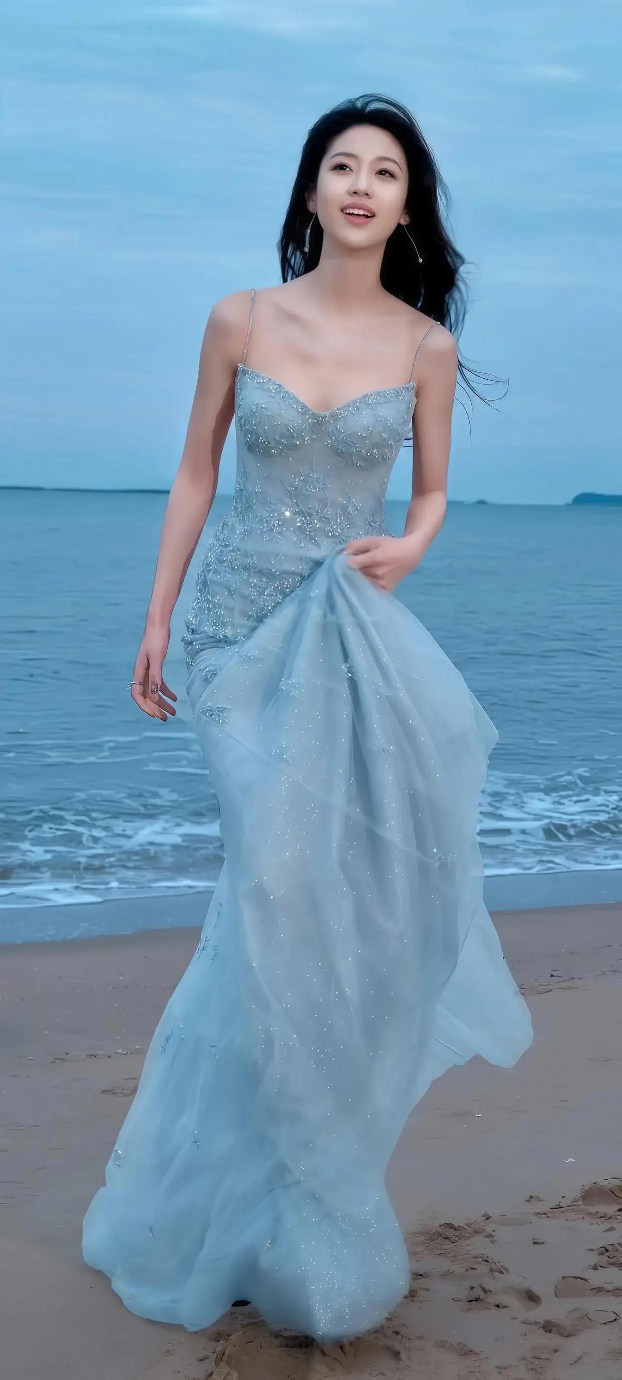 向涵之海边大片美到犯规! 向涵之这组海边写真也太绝了吧!一袭冰蓝色亮片吊带长裙,在海边的映衬下宛如落入凡间的人鱼公主,发丝被海风吹起的瞬间,又美又仙,氛围感直接拉满~向涵之