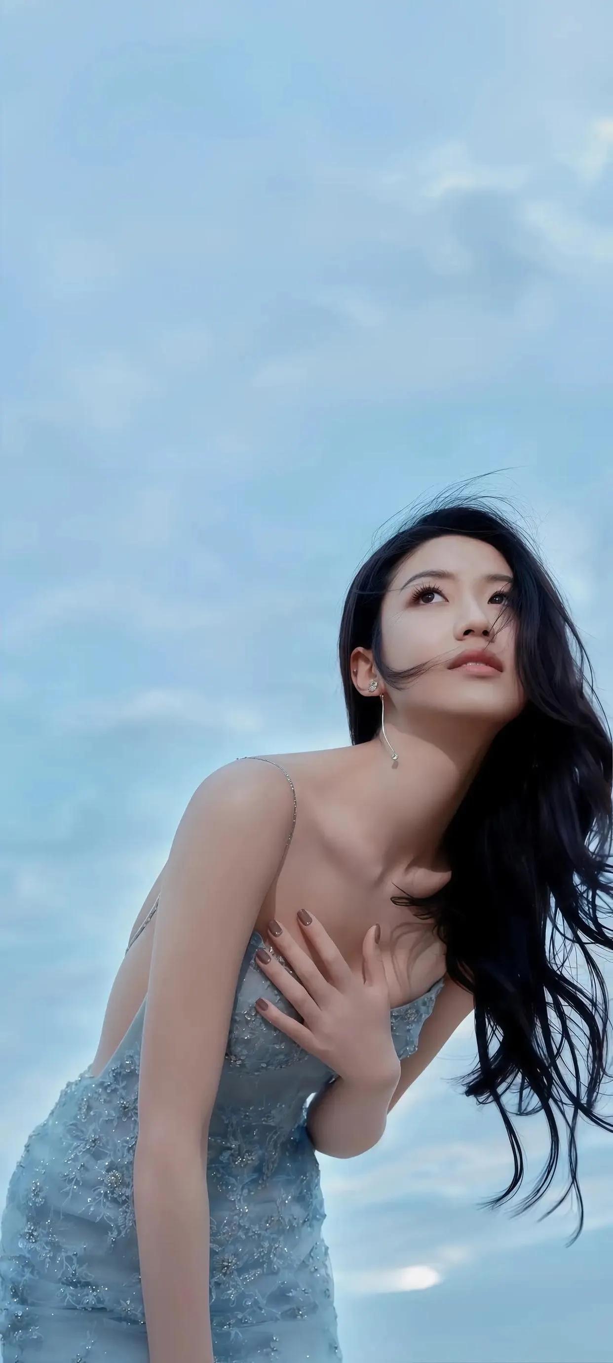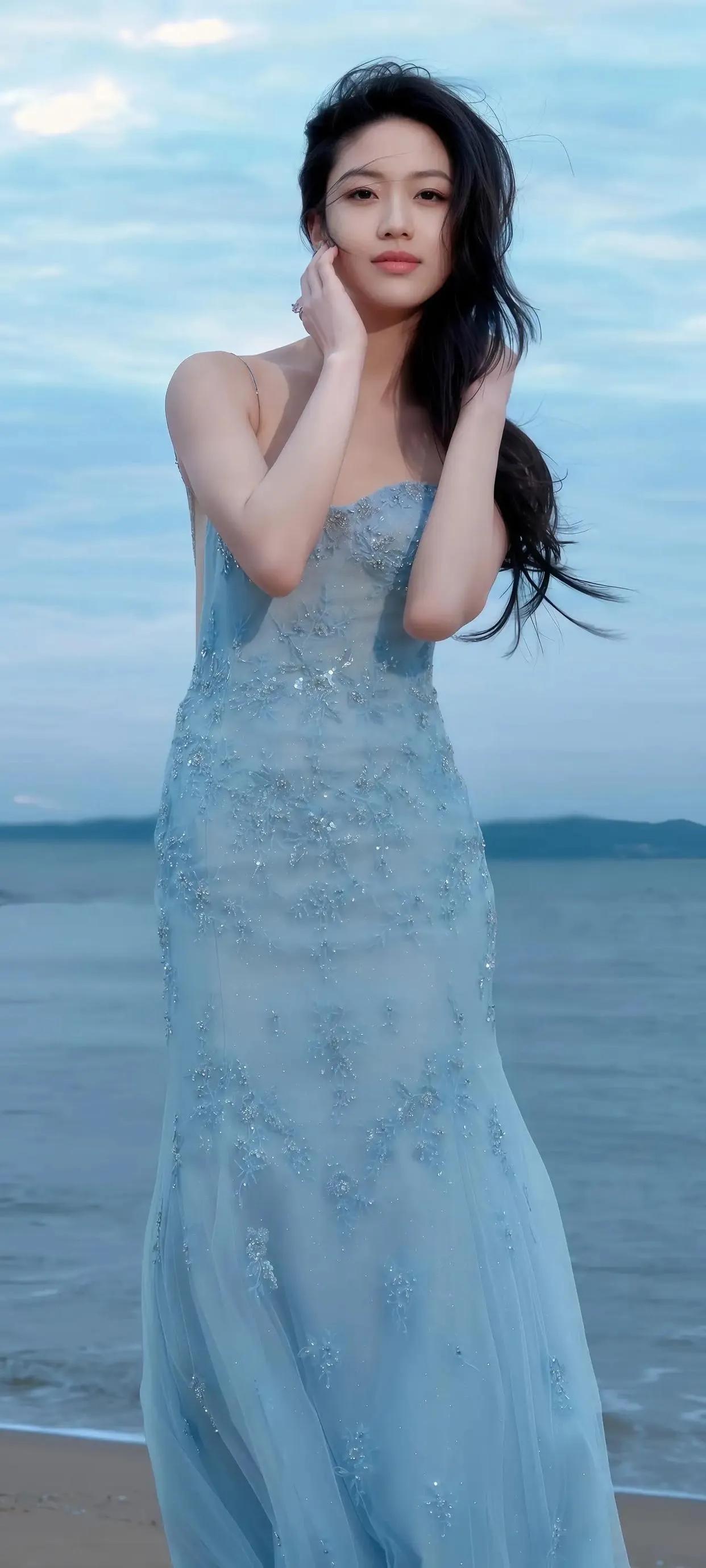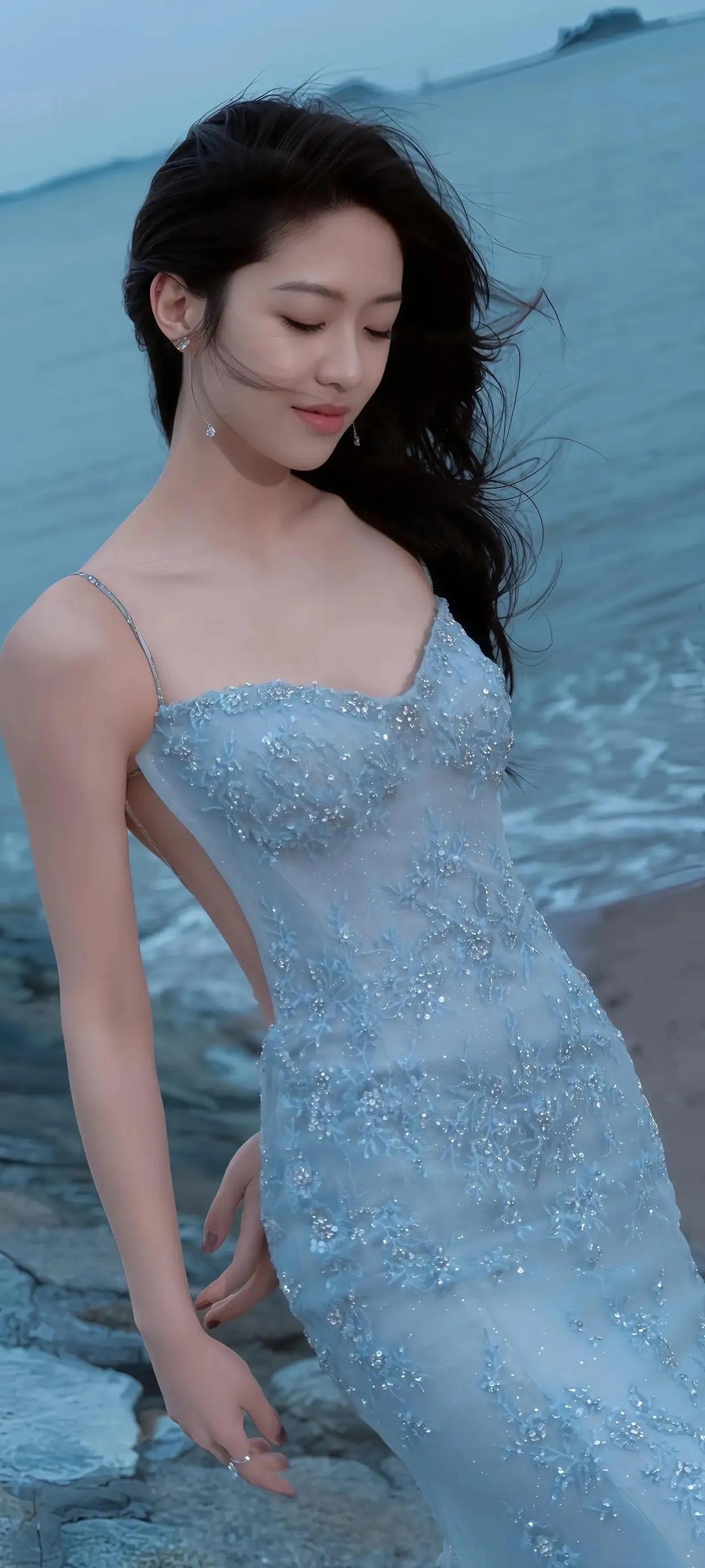 向涵之海边大片美到犯规! 向涵之这组海边写真也太绝了吧!一袭冰蓝色亮片吊带长