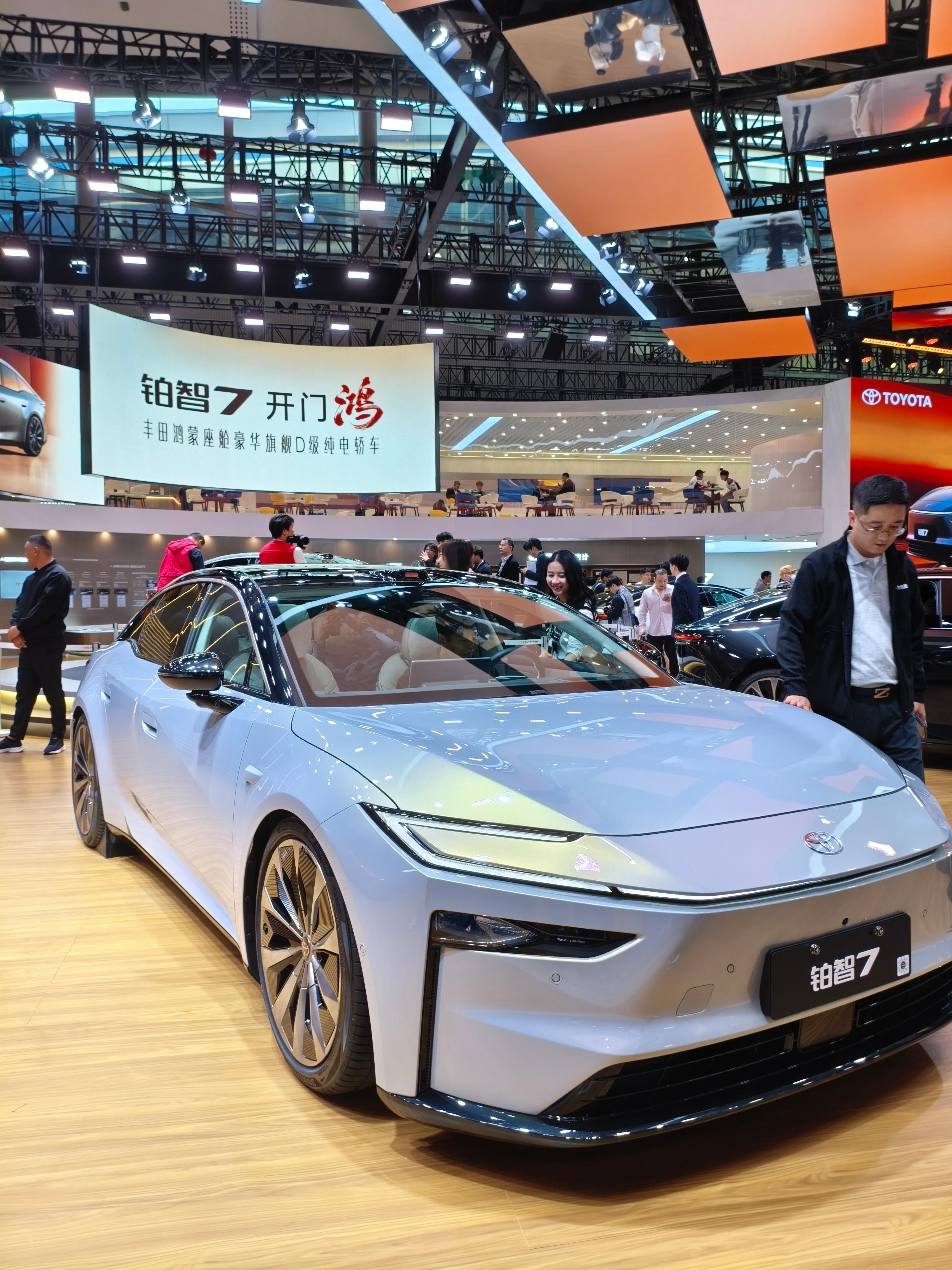 广汽丰田算是把这波热度抓住了,从车展没开始就接连曝光了好几辆车,现场也是很多人都在关注铂智7,毕竟是广汽丰田纯电的旗舰车。作为首次全量发布的重磅新车,铂智7的首开门设计一亮相就炸场。现场观众也很多人想打开车门亲身体验,质感和设计感确实非常圈粉,随手拍都是爆款素材。而且还搭配了豪华三件套:双腔空悬、鸿蒙座舱、激光雷达。作为合资车企再把自身的造车经验深度融合进去,怪不得广汽丰田可以在合资新能源赛道走的稳稳当当。铂智7也是刚露脸就火到出圈,我也凑了个热闹打了个卡。而且铂智7的预订通道已开启,喜欢的记得关注一下。