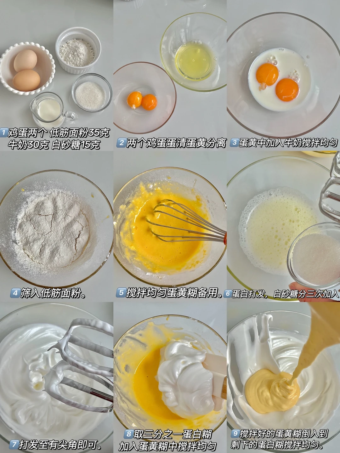 1️⃣两个鸡蛋蛋清蛋黄分离。