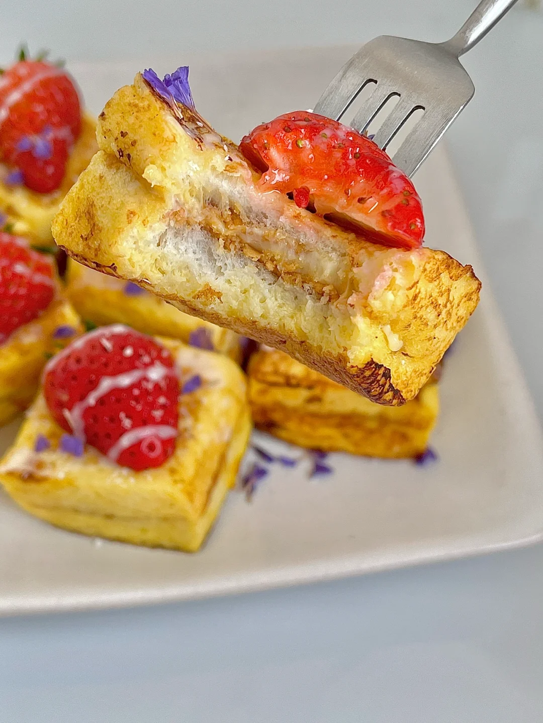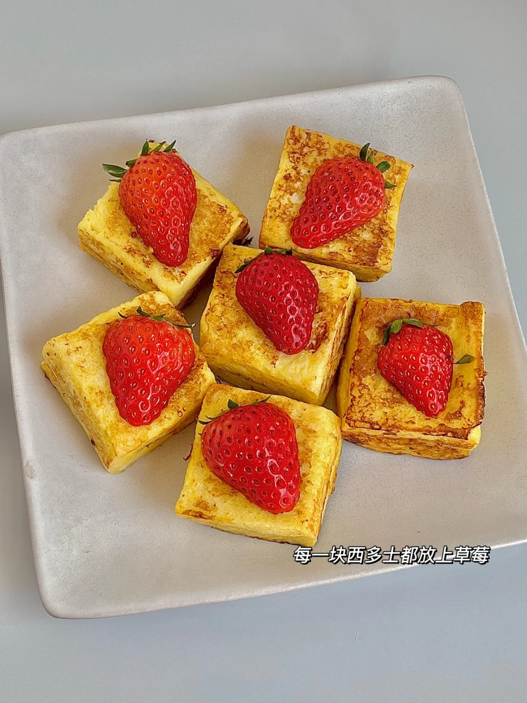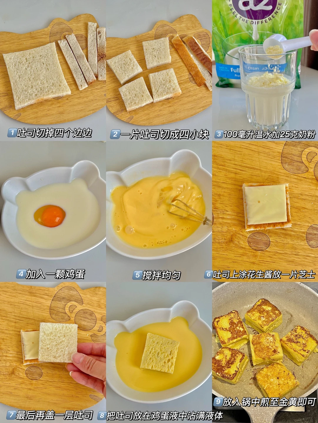 🥛食材:吐司三片,鸡蛋一个,a2成人奶粉,芝士片两片,花生酱适量,草莓
