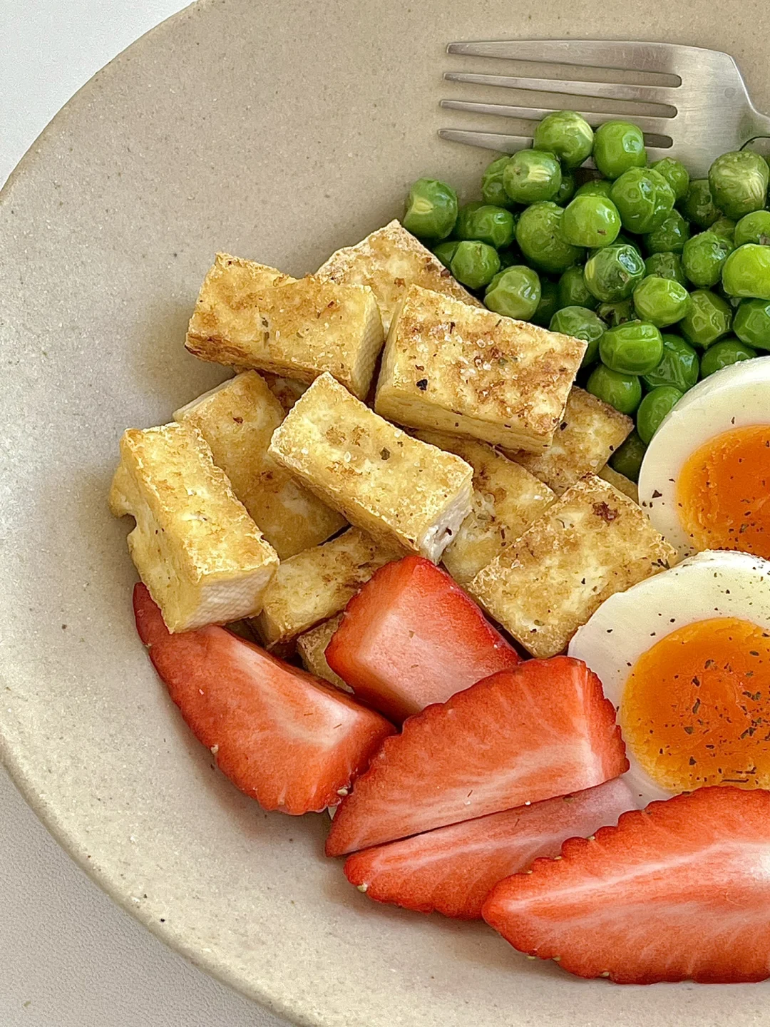 ☀️工作日早餐|低卡饱腹煎豆腐青豆鸡蛋沙拉
